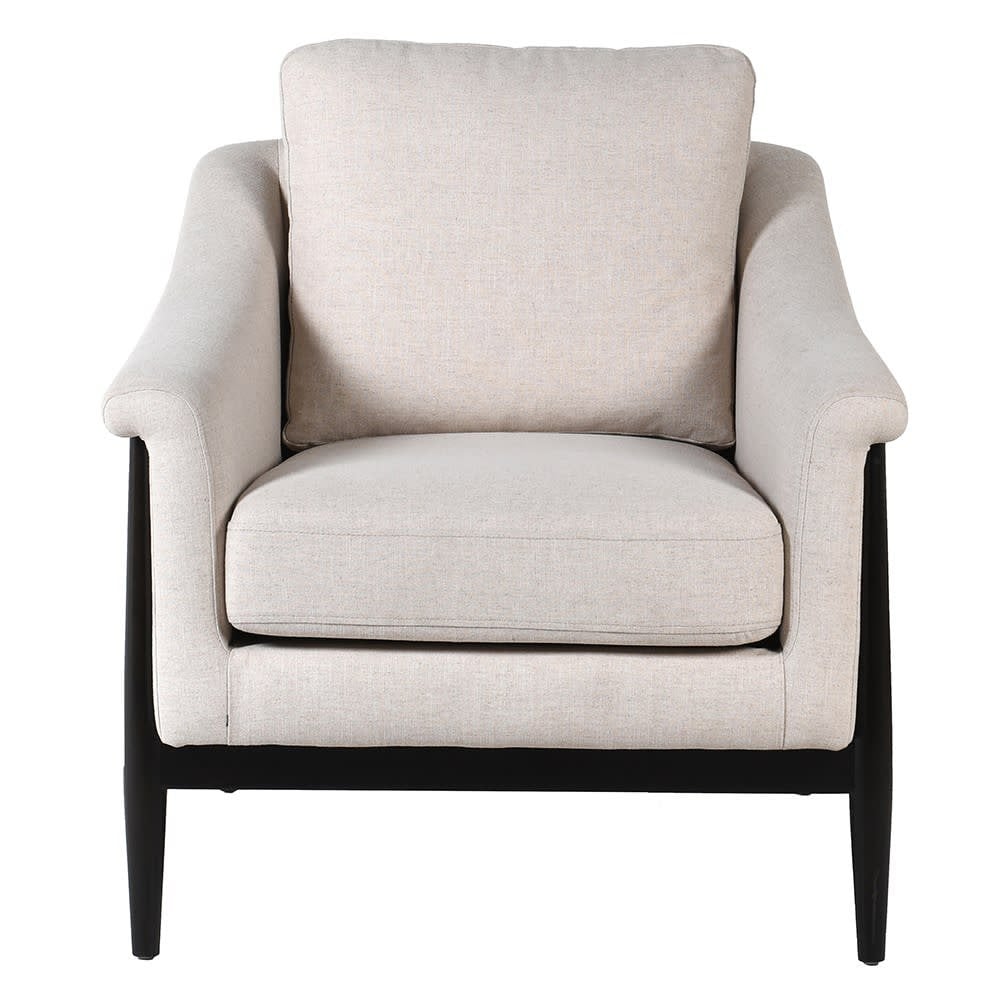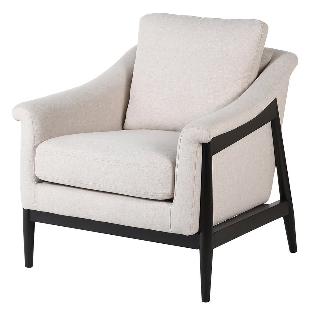 Mayfair Shaped Armchair Cream Linen Fabric Upholstery & Black Wood Frame