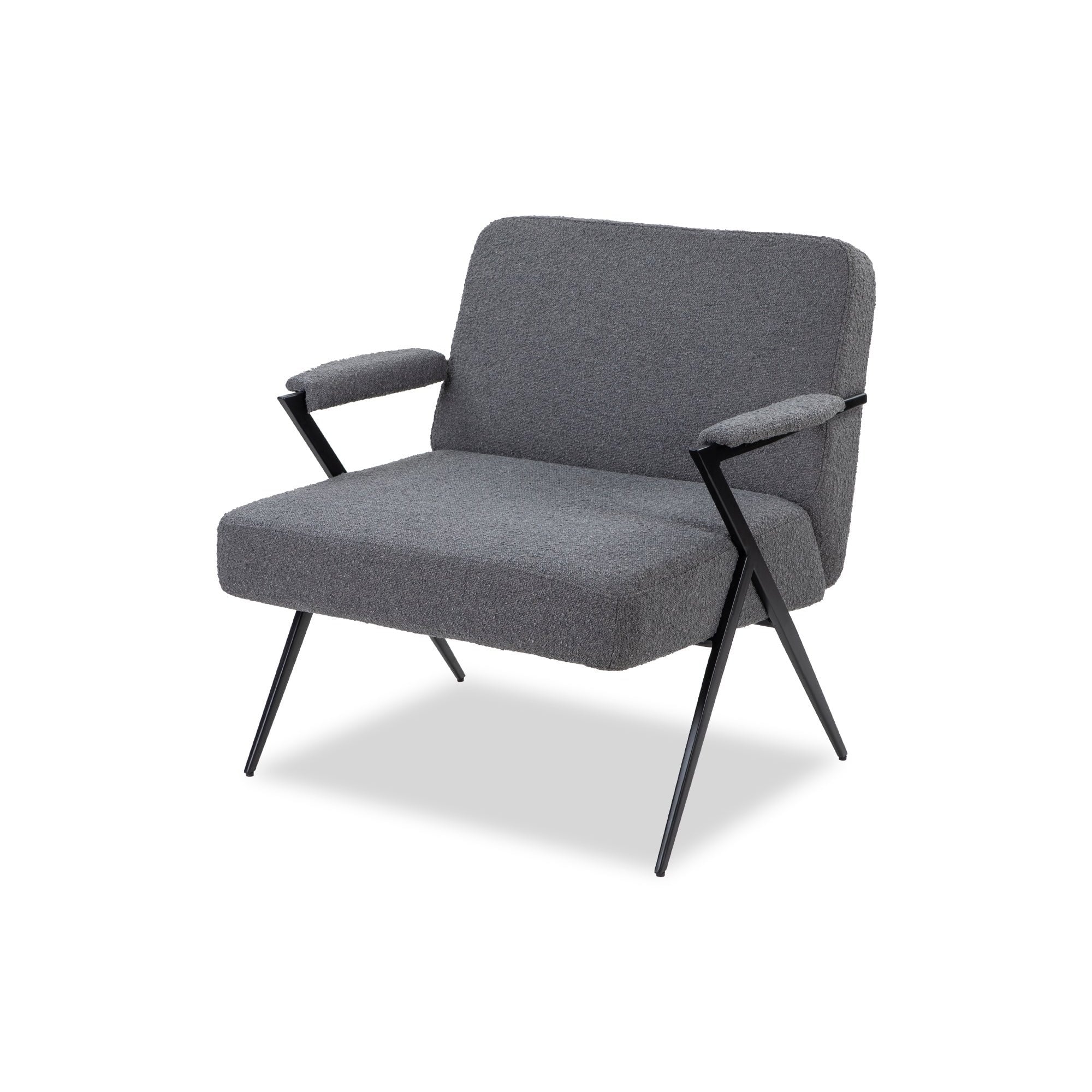 Ponti Occasional Chair Boucle Graphic Grey Fabric Matt Black Steel Frame