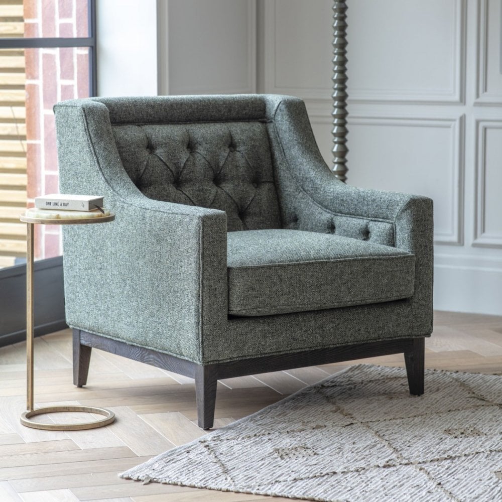 Theodore Buttoned Warm Grey Armchair