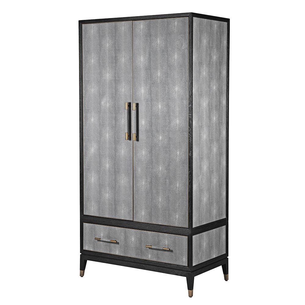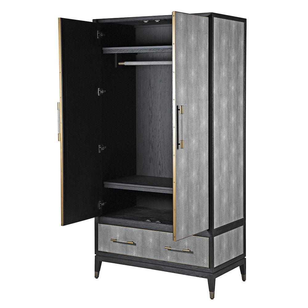 Islington Double Wardrobe Grey Oak Wood & Shagreen Brass Detail 2 Drawer