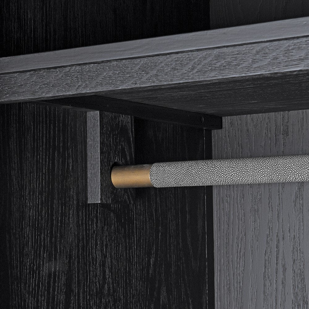 The Islington wardrobe is a charming and functional addition to your bedroom décor. Crafted from Oak Veneer and Faux Shagreen materials, this wardrobe combines convenience and art deco style seamlessly. It features a spacious drawer, adorned with elegant handles with brass accents for a touch of sophistication.