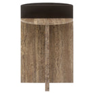 The Russo collection is manufactured in India using a metal cladding technique, in which a thin layer of metal is shaped by hand and attached to a wooden base. The design is similar to the Ironville but features a dark brown bronze metal finish. The tabletop is made of brown travertine, also known as titanium travertine, which gives the collection a warm and distinctive look.