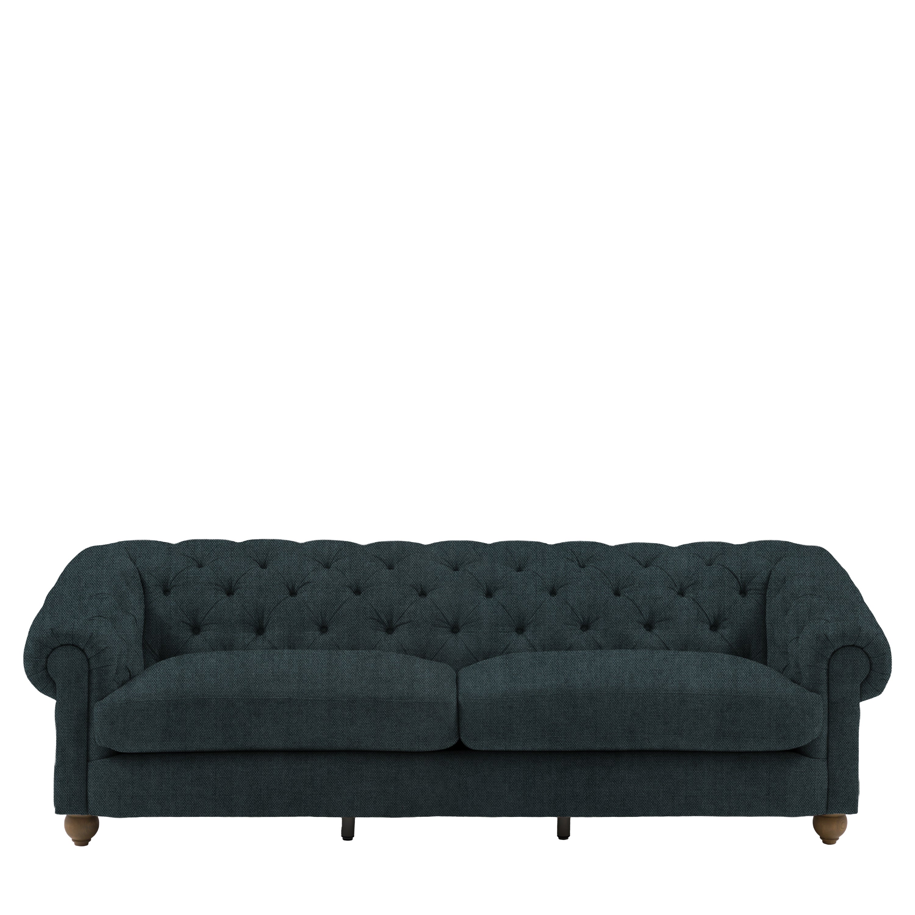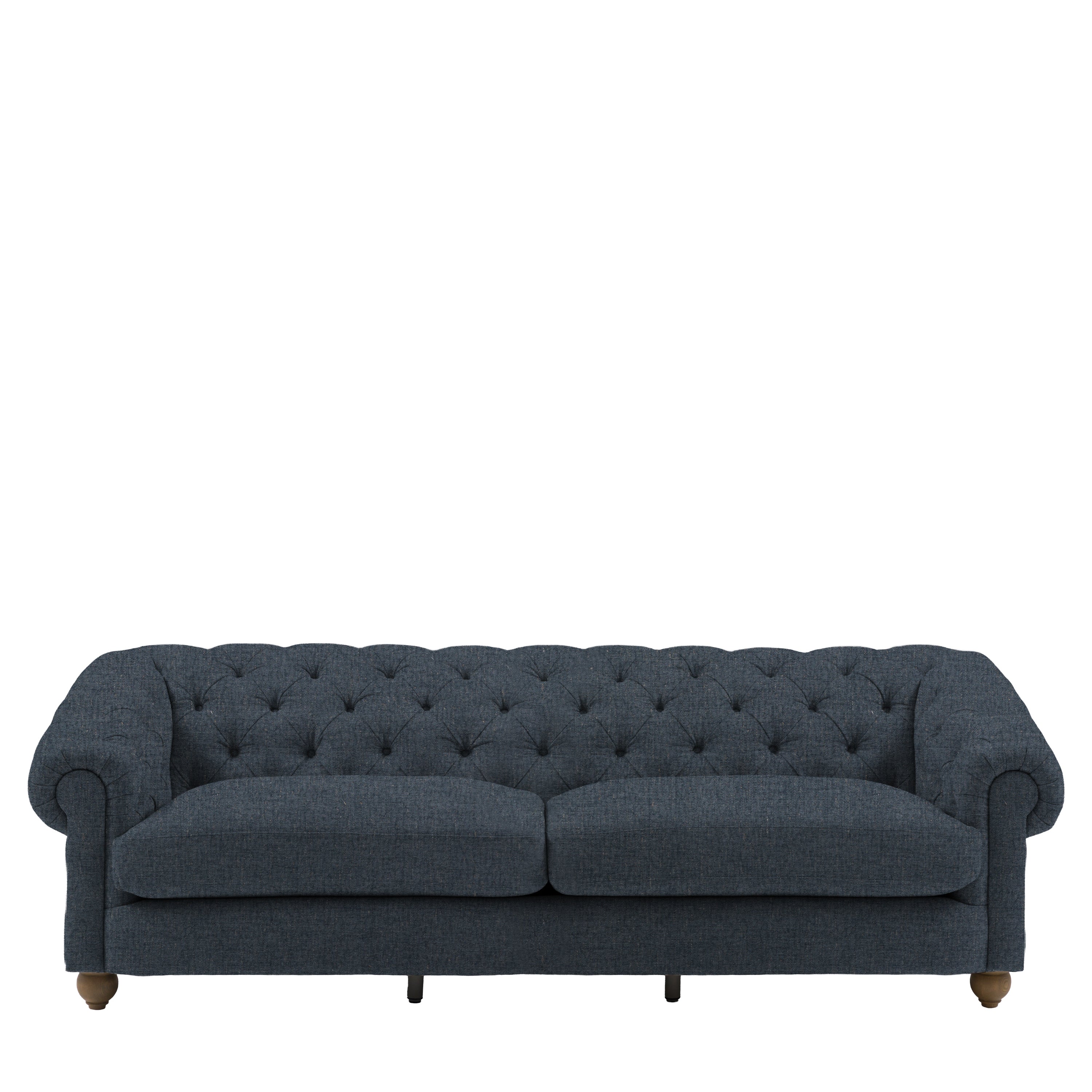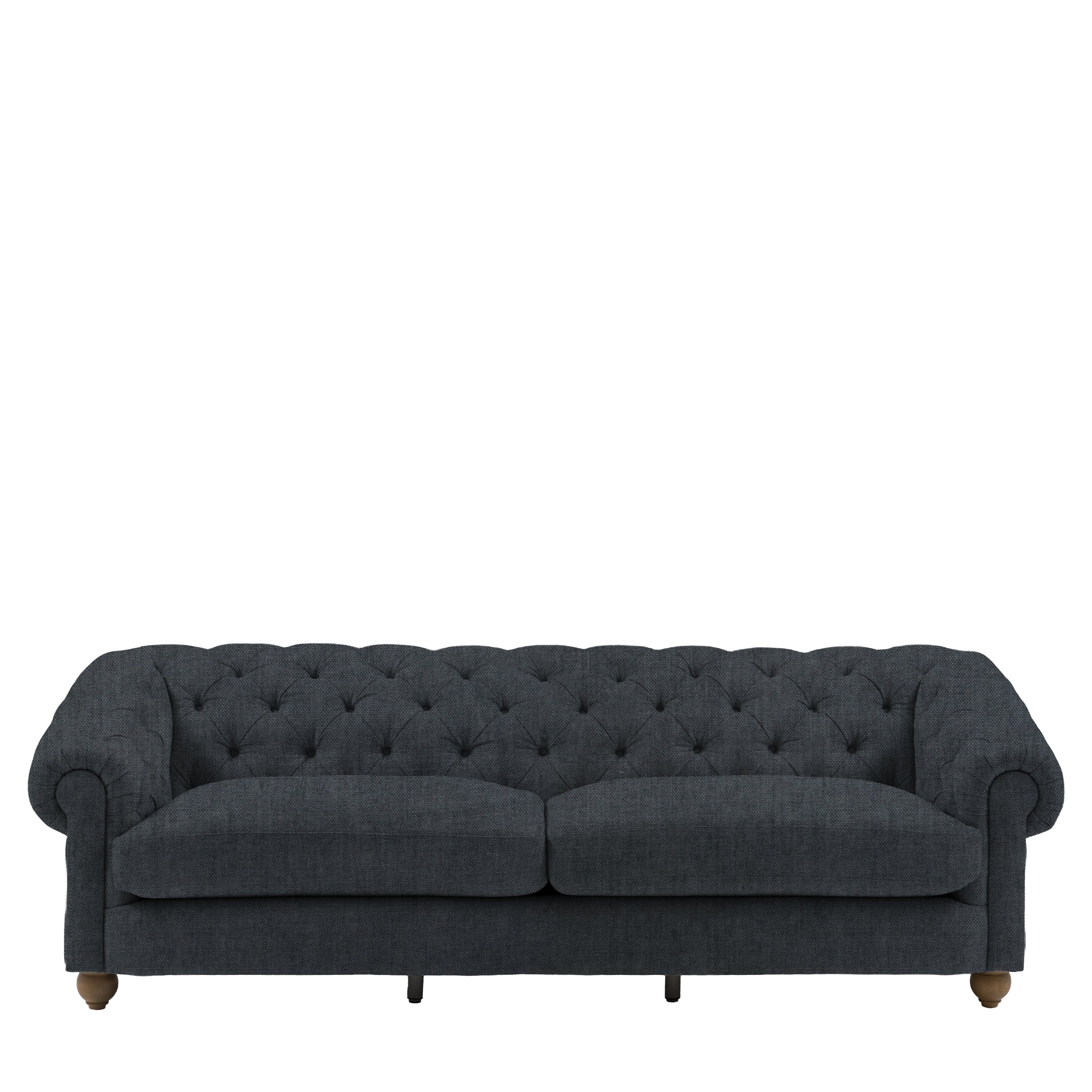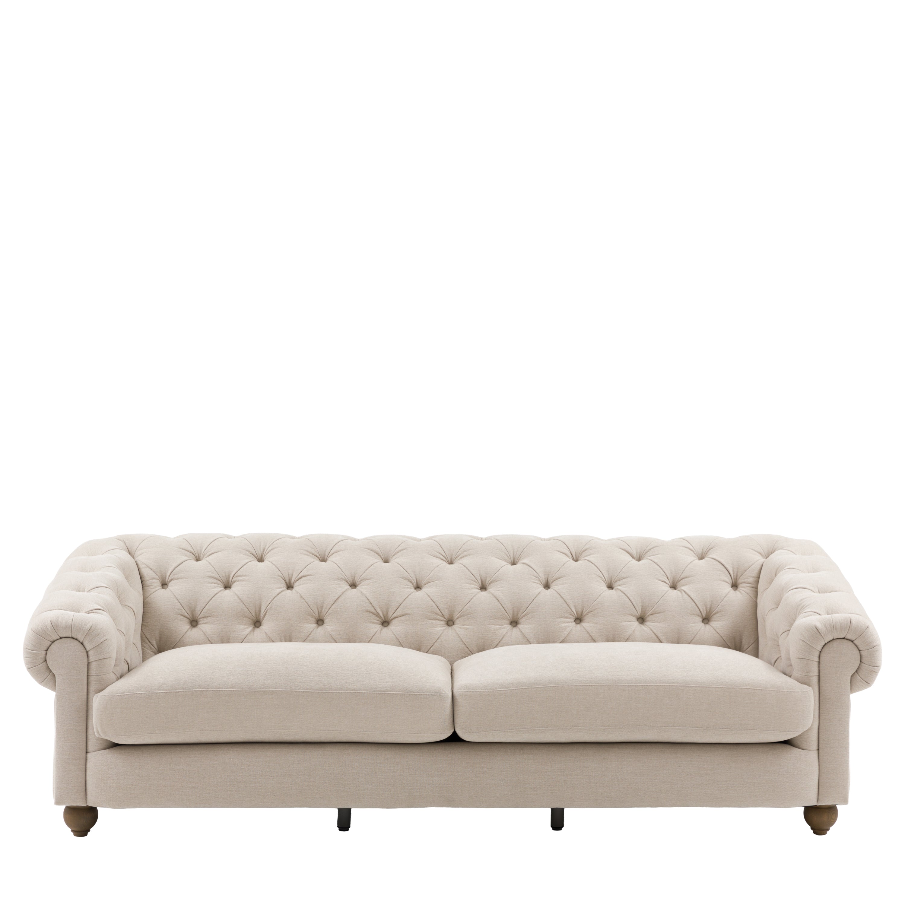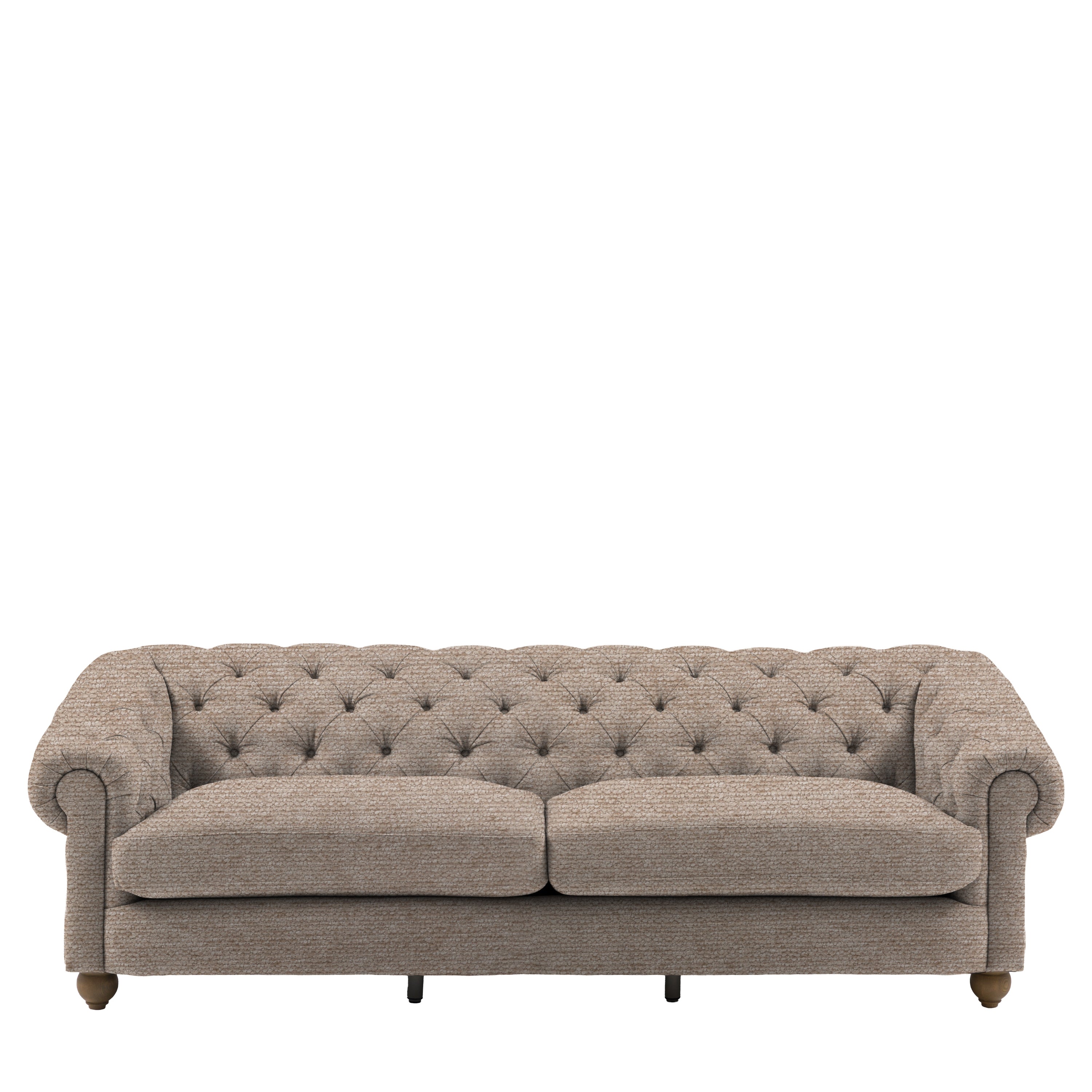 Timeless elegance, reimagined for modern living. This refined 4 seater sofa reimagines an iconic design for modern living, featuring a deep-buttoned back, scrolled arms and a gracefully contoured silhouette. Supportive foam and polyester-fibre fillings provide lasting comfort, while pocket-sprung seat cushions offer exceptional bounce and resilience. Finished with solid ash legs for a natural, elevated touch, it captures the enduring appeal of traditional craftsmanship with a contemporary twist. A statement piece that brings sophistication and character to any interior.