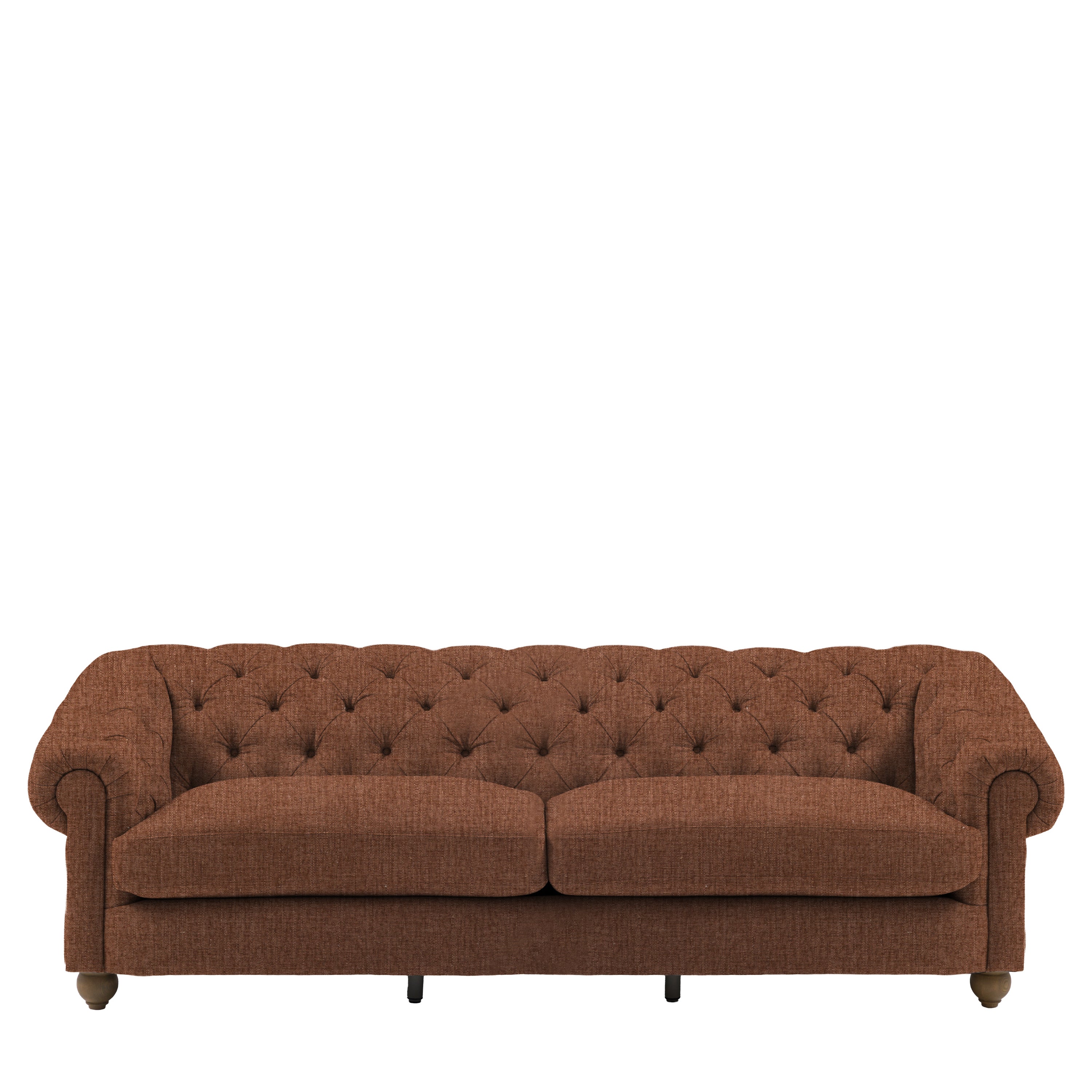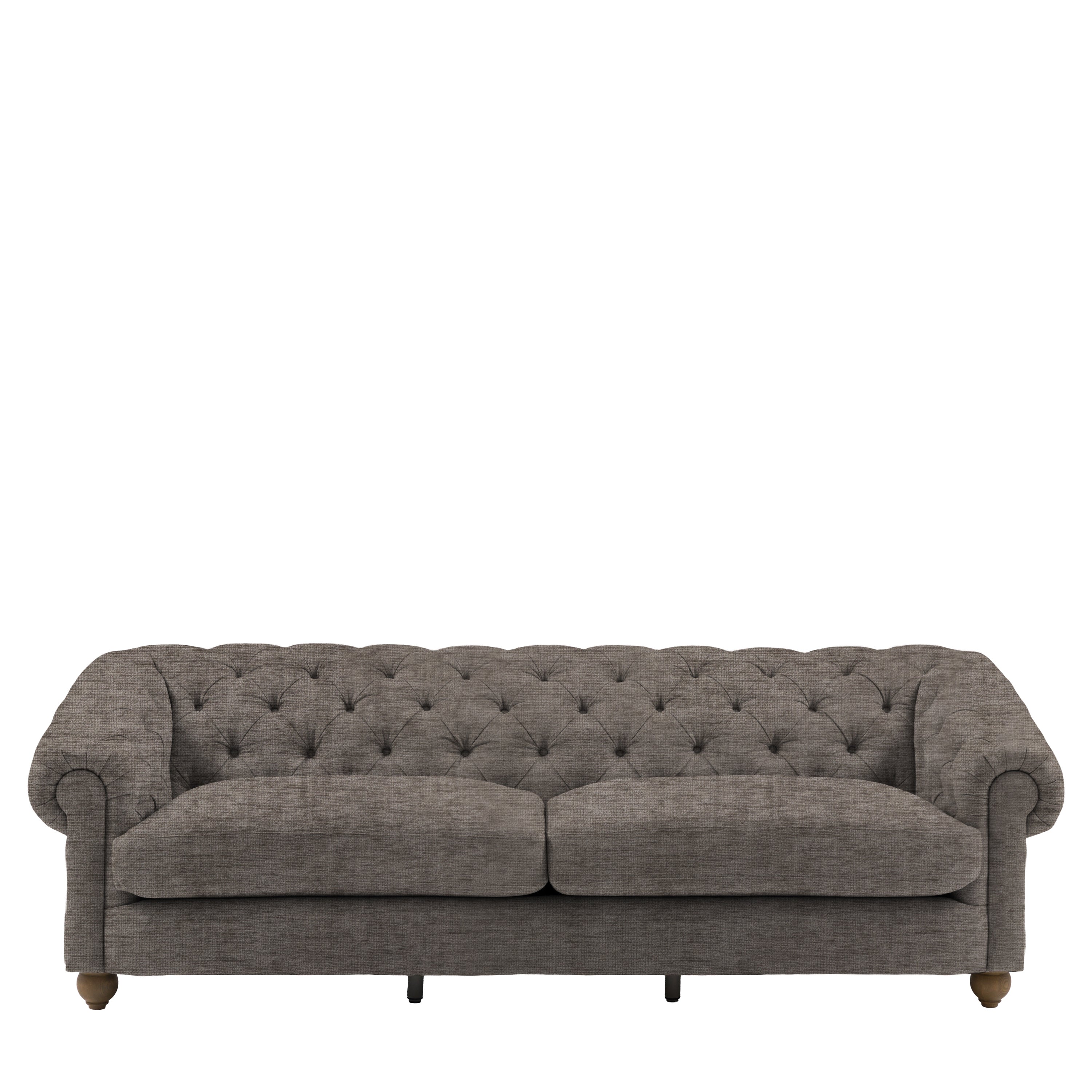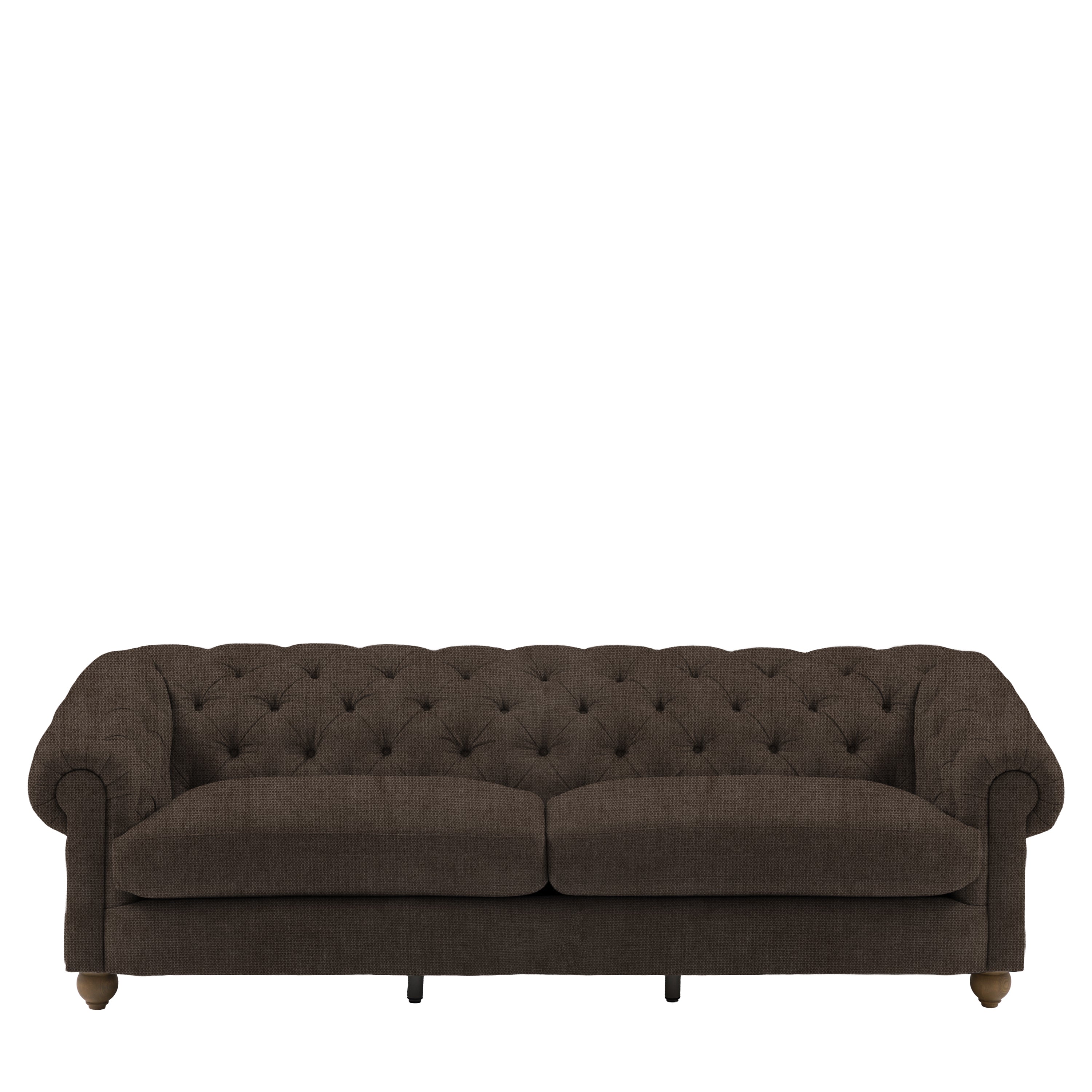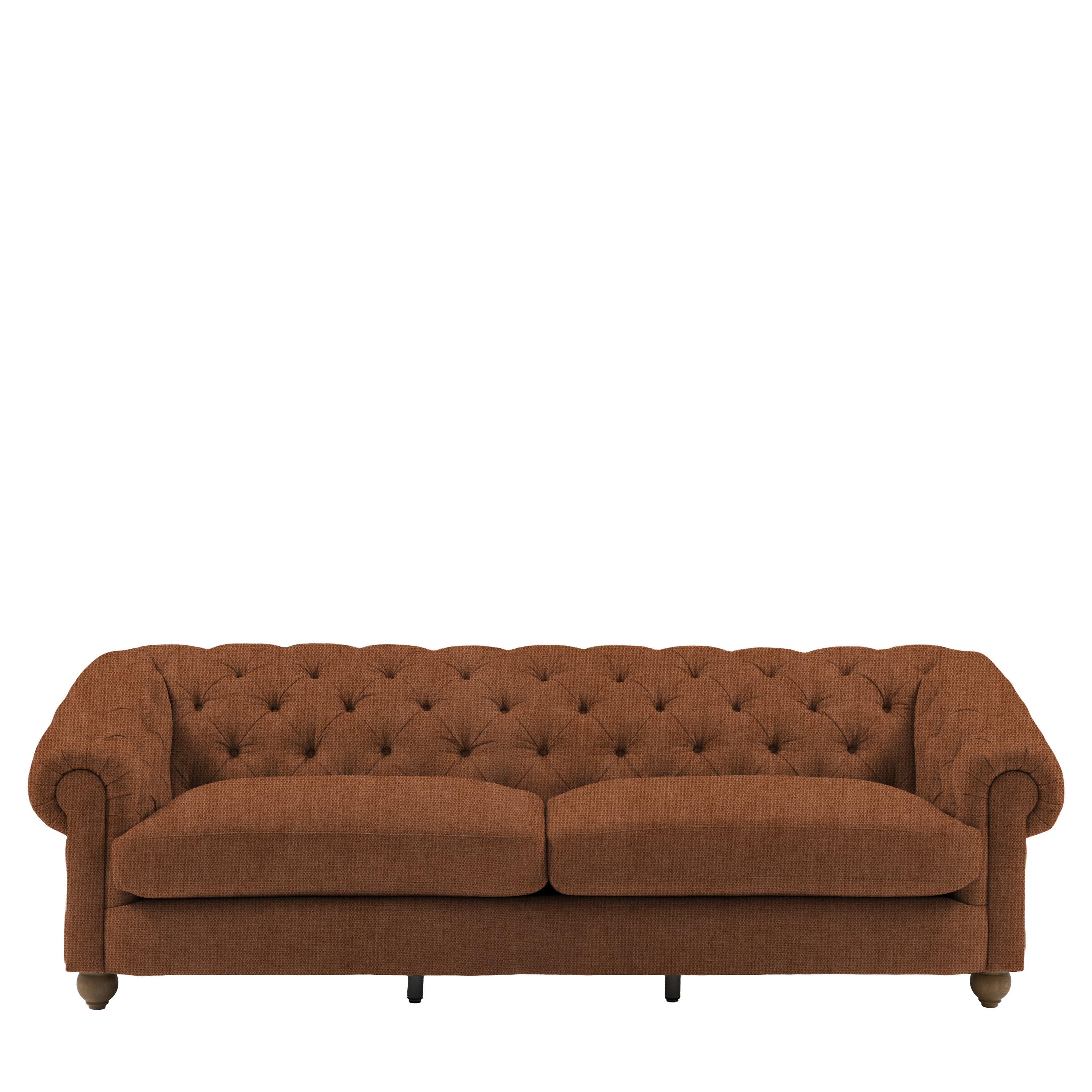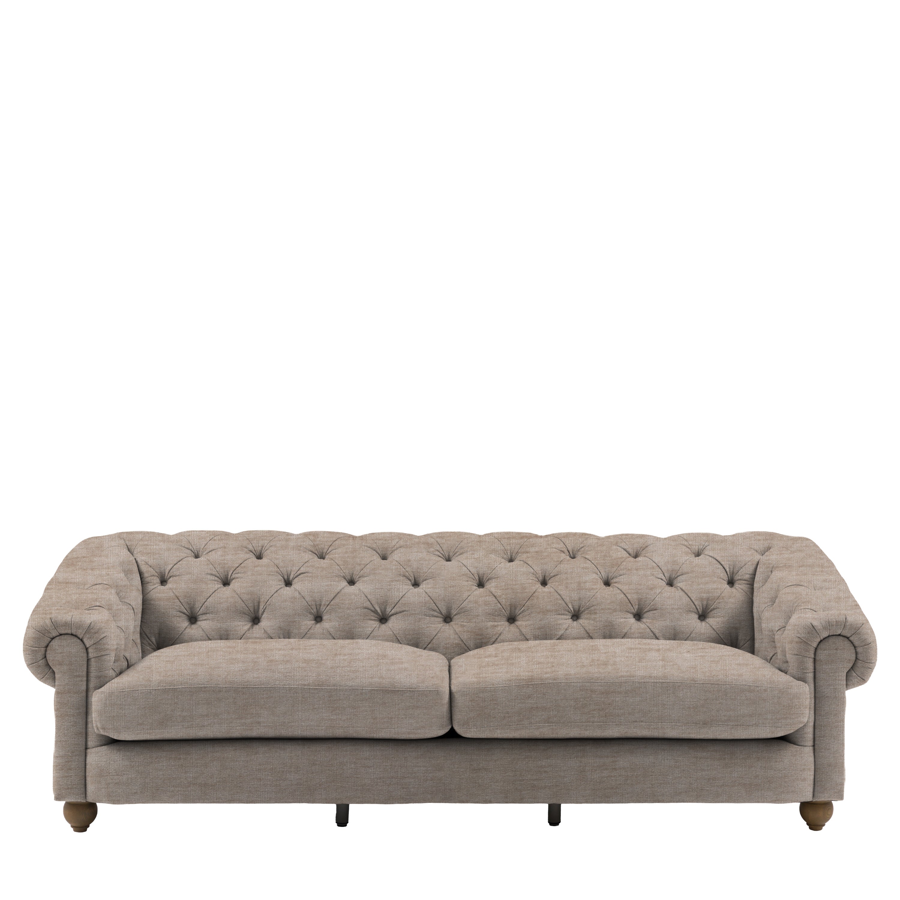 Timeless elegance, reimagined for modern living. This refined 4 seater sofa reimagines an iconic design for modern living, featuring a deep-buttoned back, scrolled arms and a gracefully contoured silhouette. Supportive foam and polyester-fibre fillings provide lasting comfort, while pocket-sprung seat cushions offer exceptional bounce and resilience. Finished with solid ash legs for a natural, elevated touch, it captures the enduring appeal of traditional craftsmanship with a contemporary twist. A statement piece that brings sophistication and character to any interior.