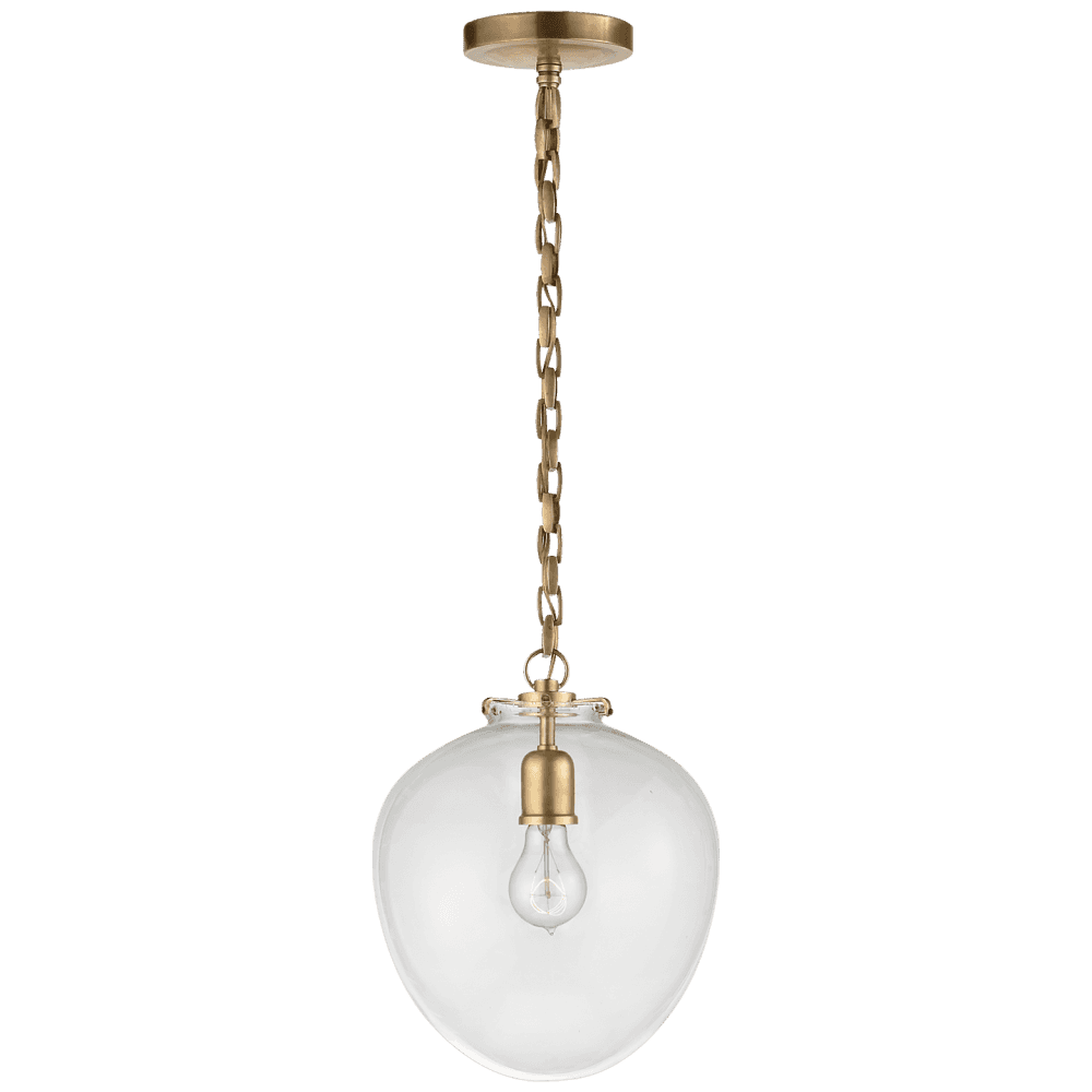 The Katie Acorn Pendant Light in Hand-Rubbed Antique Brass with Clear Glass Shade is a refined lighting fixture designed by Thomas O'Brien for Visual Comfort Signature. This pendant light combines vintage charm with modern elegance, making it suitable for various interior styles.