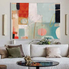 Large framed heavy texture abstract print finished on hessian. This modern abstract print is hand finished, with no two the same, and has beautiful paint strokes and pallette knife textures. Please note that the dimensions are for the oil on canvas only and exclude frames which typically add an extra 1-2 cm on top.