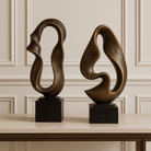 A striking contemporary sculpture crafted in rich dark tones, enhanced with subtle blonde highlights and naturally formed textural indentations. Its fluid, modern silhouette adds effortless sophistication to any console, shelf, or curated vignette. Style it as a pair for balanced symmetry or combine with the coordinating Large Abstract Decor (SDA045) for a layered, gallery-inspired display.