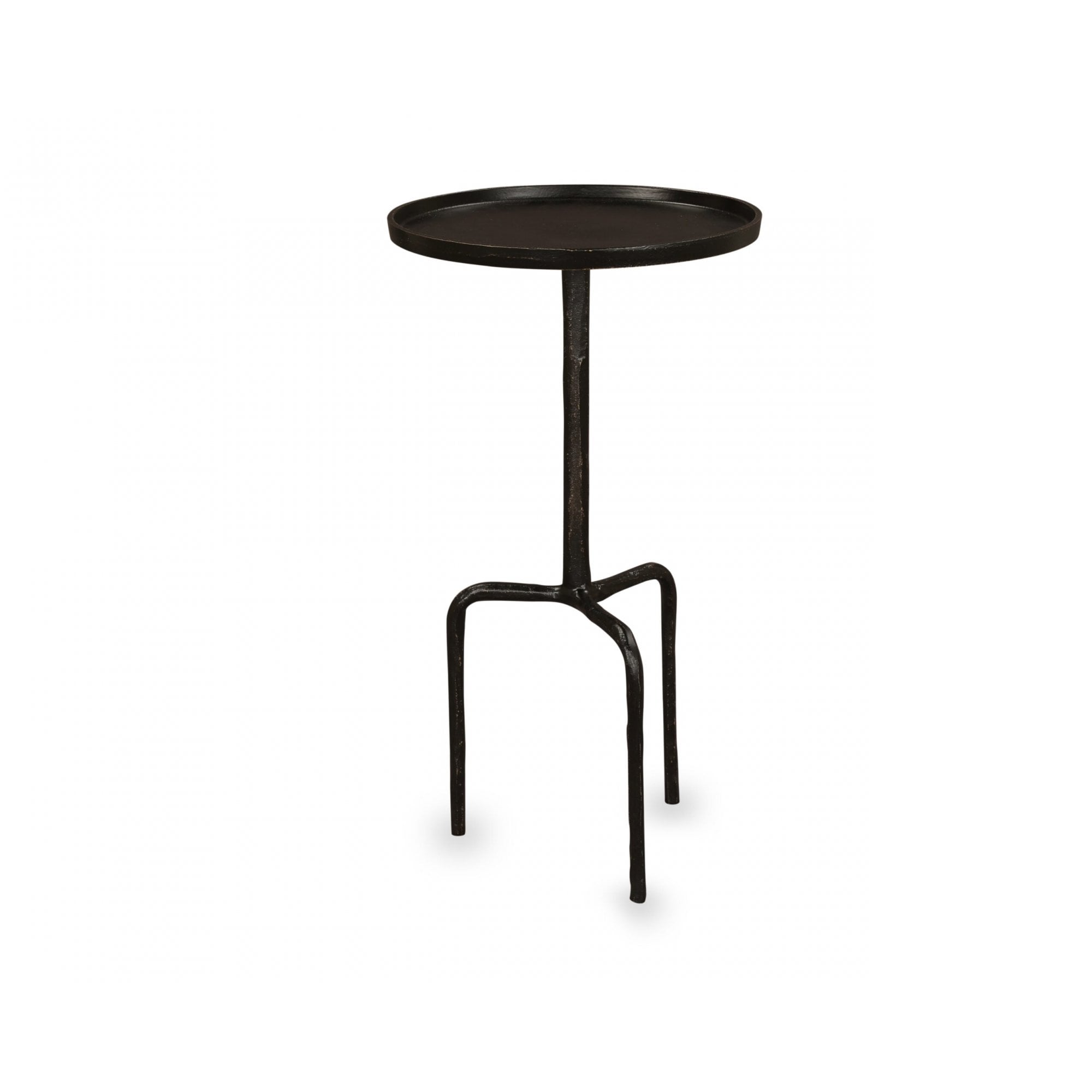 The Liang & Eimil Agoda Side Table is a stunning addition to any space, bringing class and charm. Hand-cast in dark bronze by expert artisans, it features a round metal table top elegantly supported by a tall stand and curved tripod legs. A perfect blend of sophistication for residential and hospitality settings.