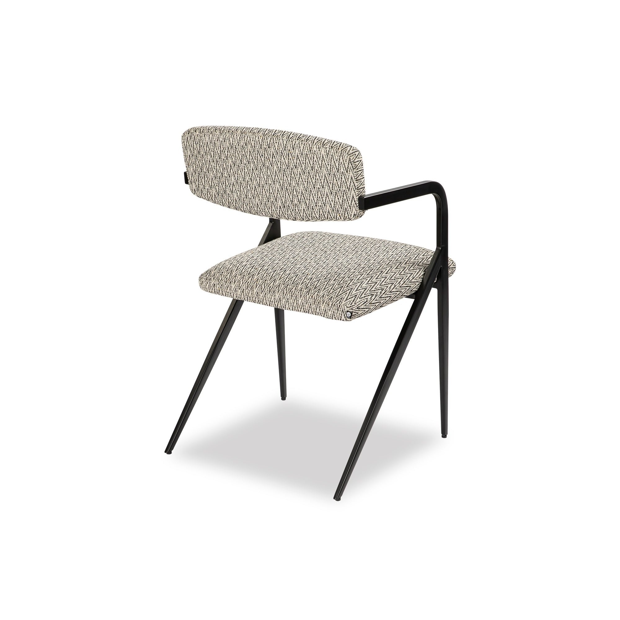 The Alpar Dining Chair combines style and quality effortlessly. Upholstered in the unique Emporio pattern fabric, this chair exudes elegance and charm. The clean lines and matt black steel legs provide a bold contrast, making it an ideal addition to any contemporary dining setting.