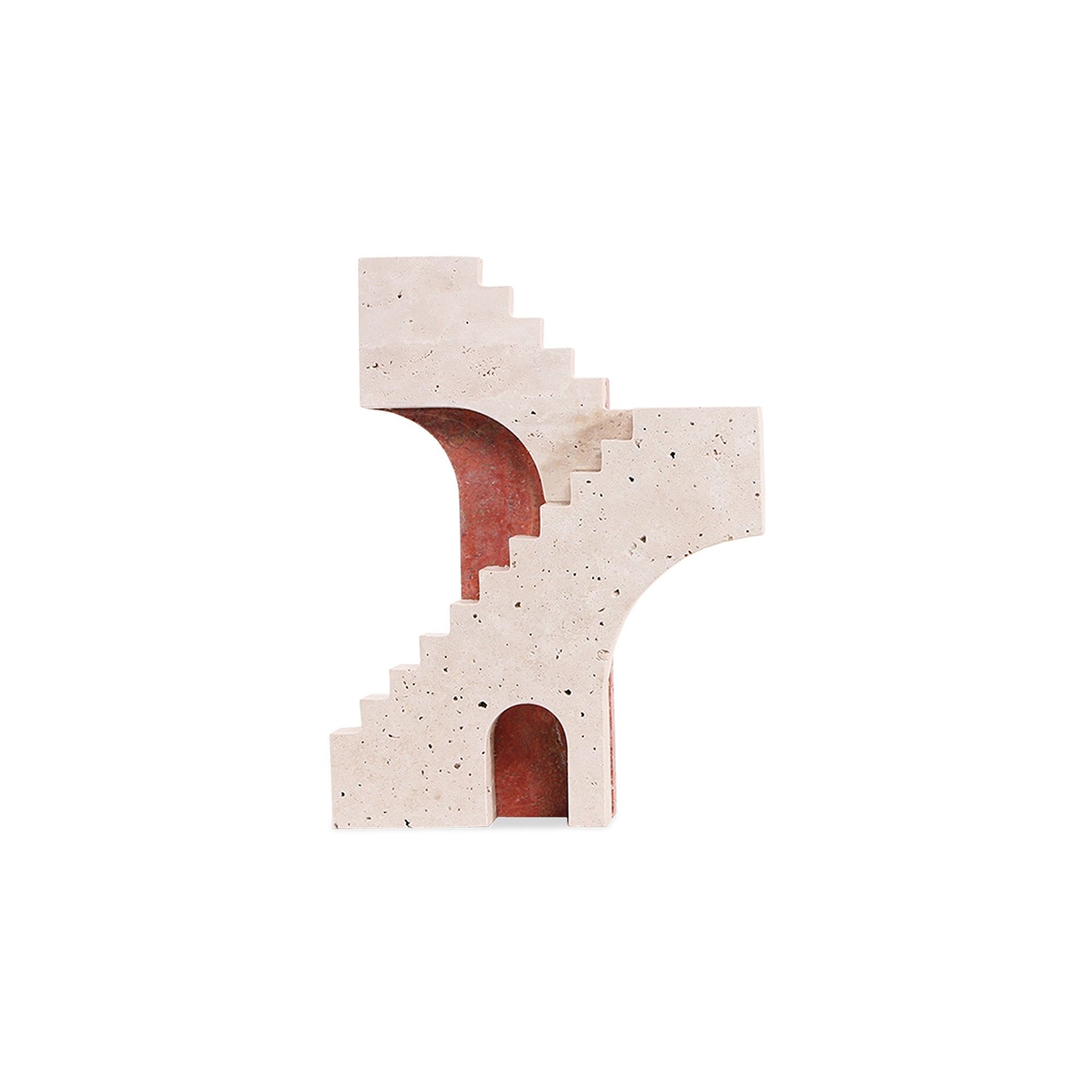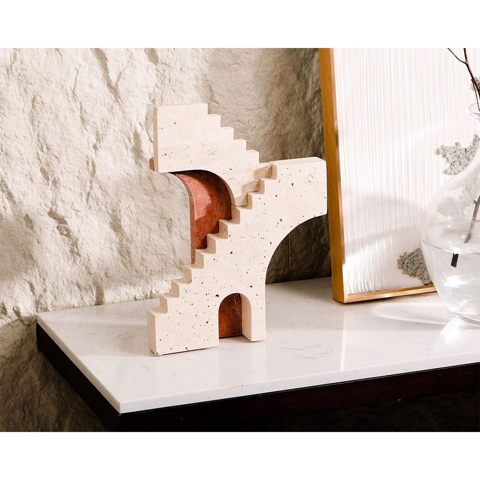 The Arched Legacy Sculpture is a striking blend of beige and red Travertine marble, showcasing a graceful arch that embodies strength and sophistication. Its fluid form adds depth and character, making it a refined statement piece for both residential and hospitality interiors.