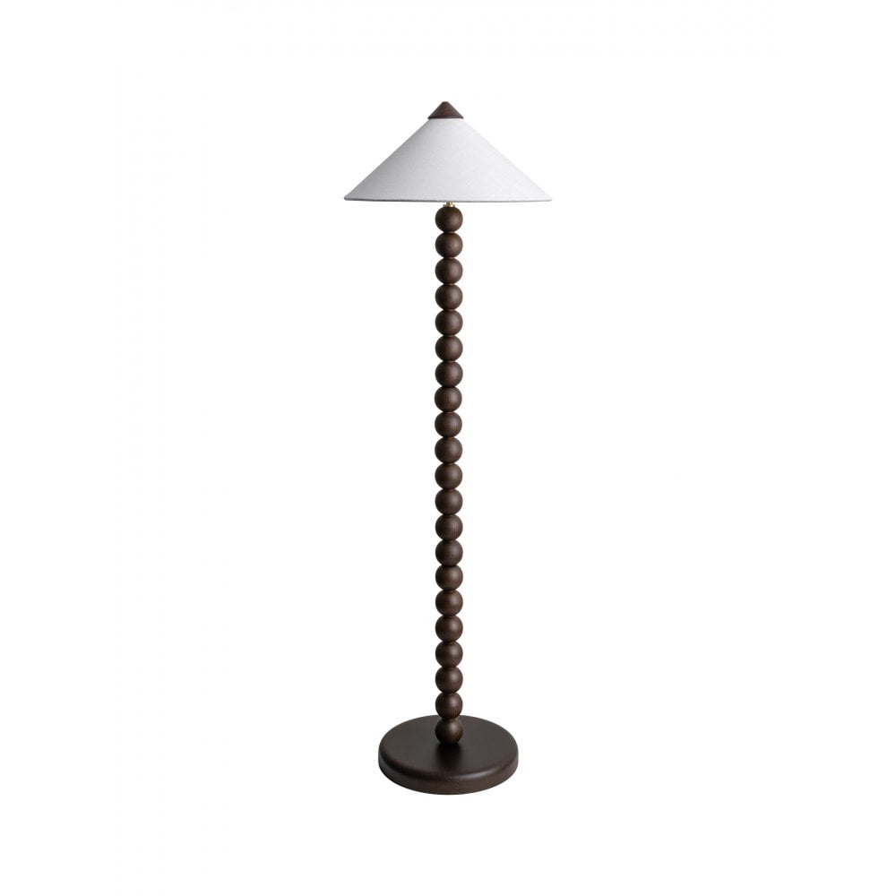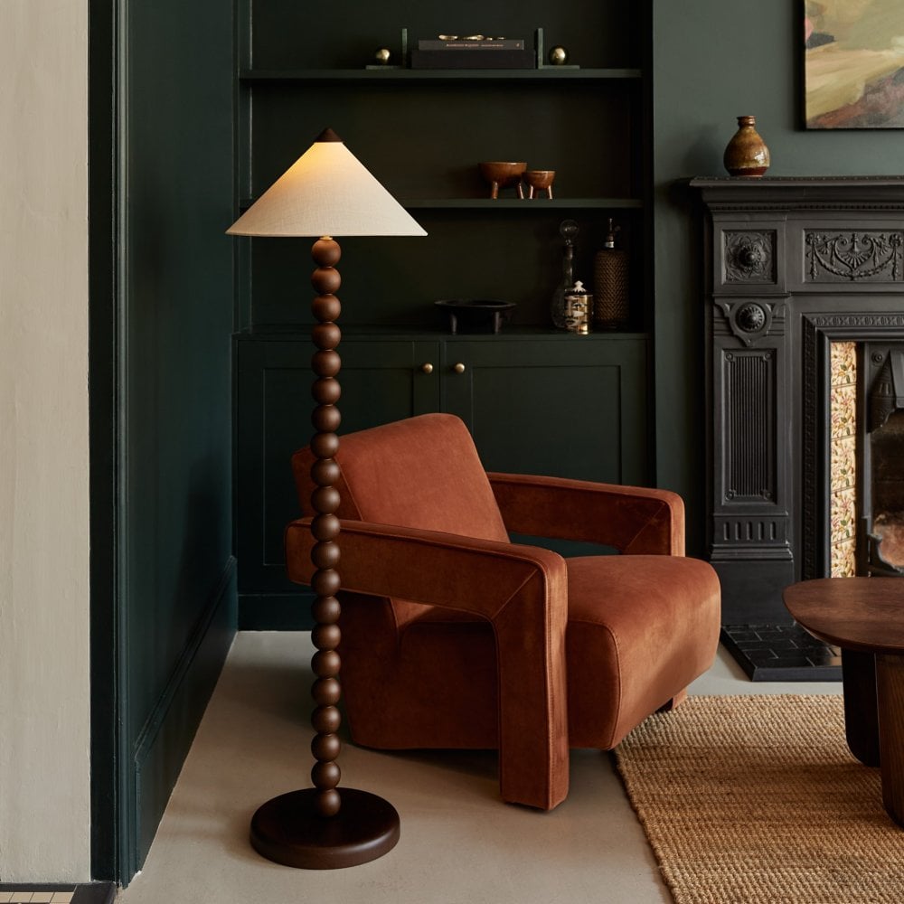 A modern twist on the classic bobbin design, Archie’s sleek and stacked silhouette is crafted from rich Smoked Oak wood. The elegant conical lampshade is also topped with a wooden cap, creating a seamless and cohesive look.