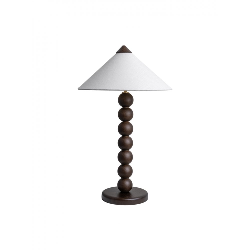 A modern twist on the classic bobbin design, Archie’s sleek and stacked silhouette is crafted from rich Smoked Oak wood. The elegant conical lampshade is also topped with a wooden cap, creating a seamless and cohesive look.