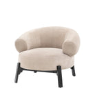 Perfect for getting cosy this well cushioned and extra comfy armchair will become the stand out feature of any space The curved wrap around back and round seat is supported by a bold dark wood base frame and legs, making it an eye catching addition to any room.
