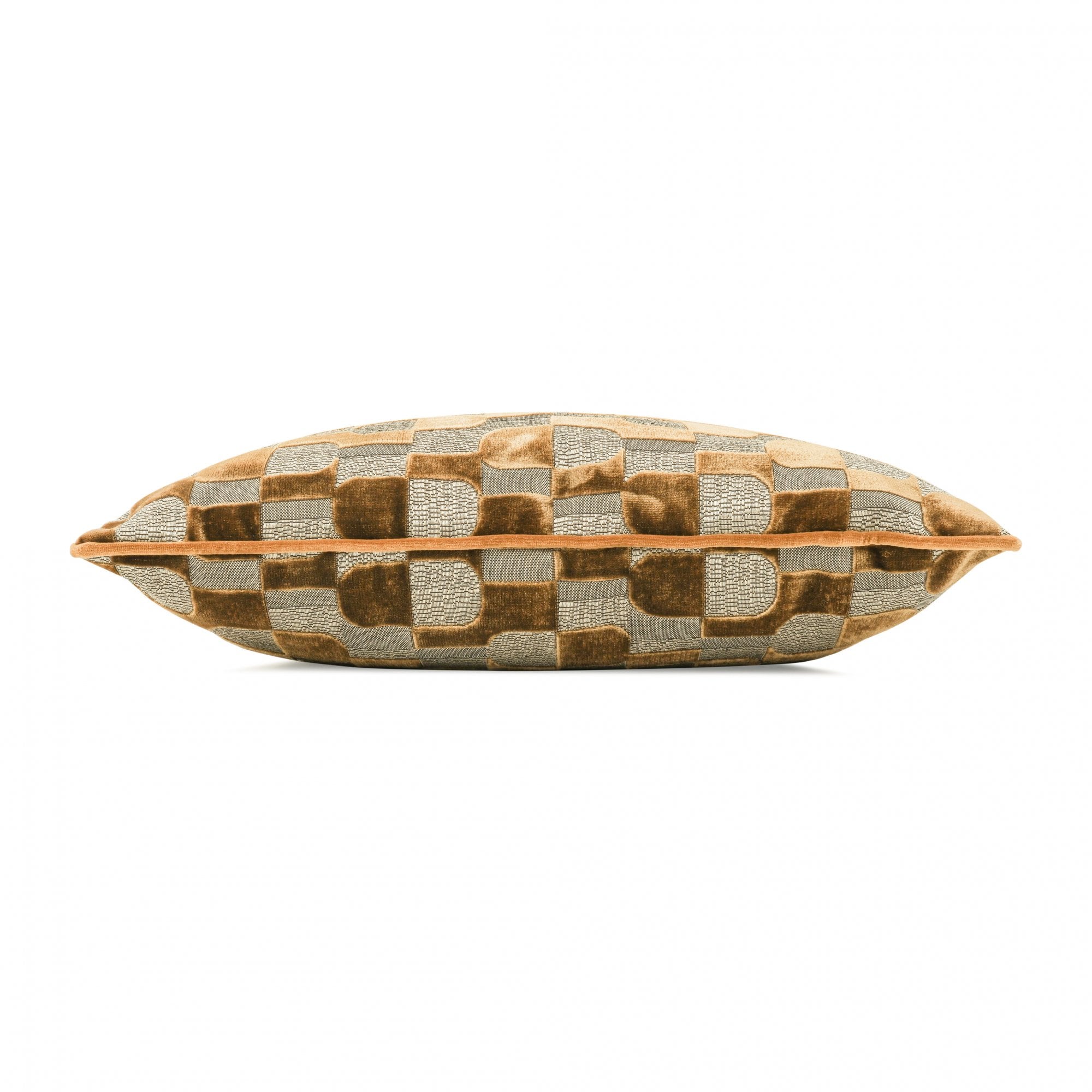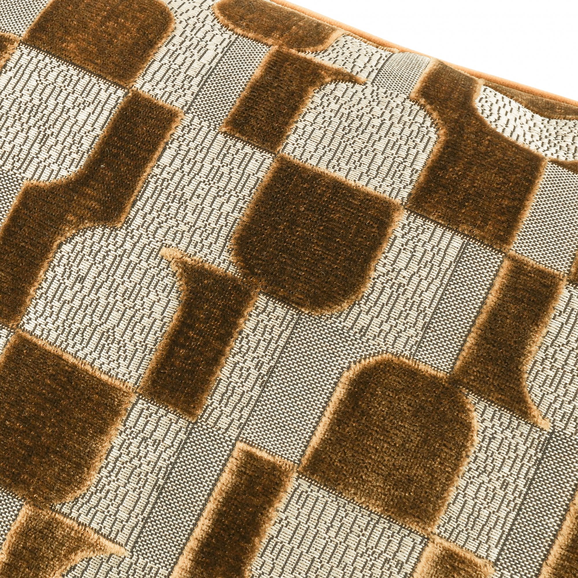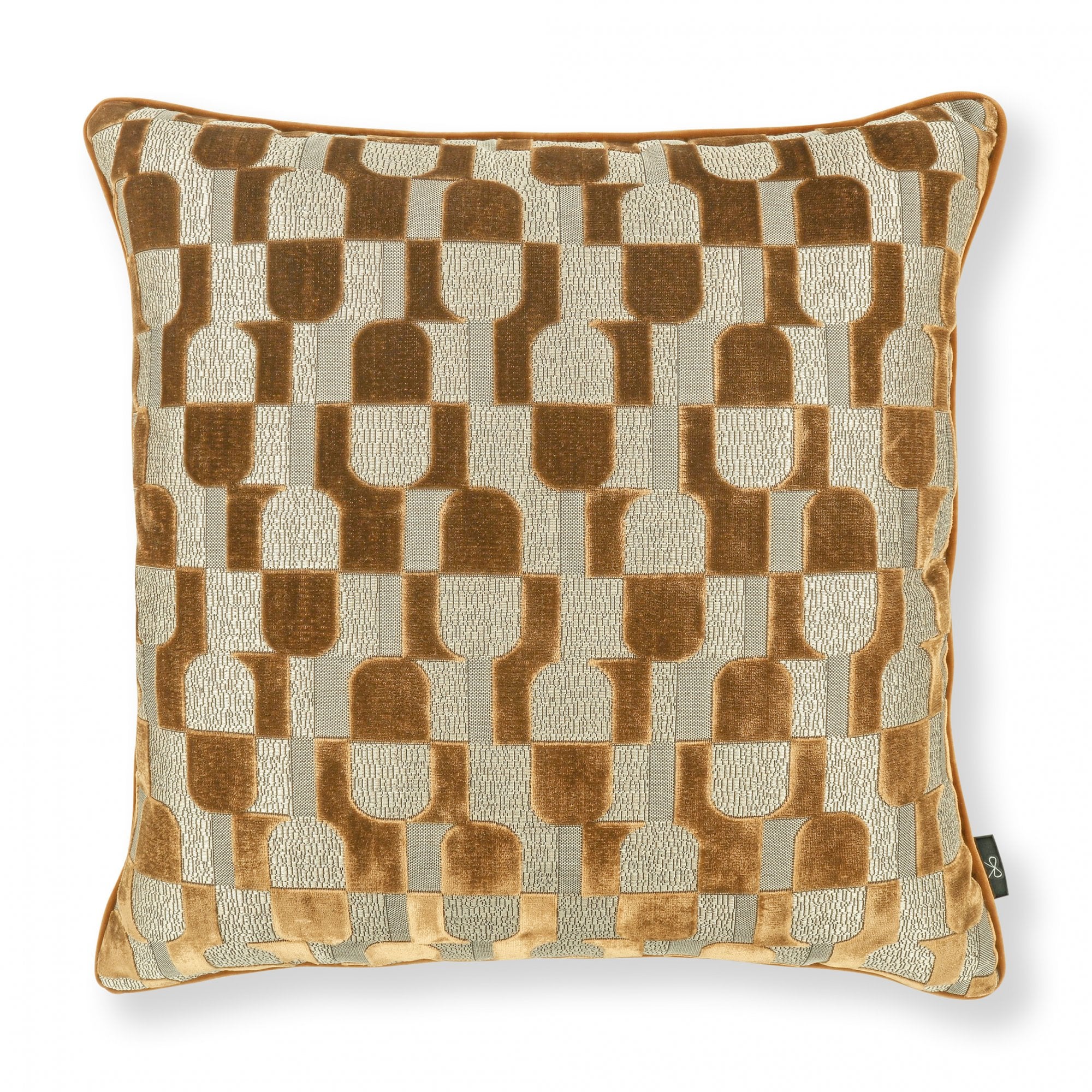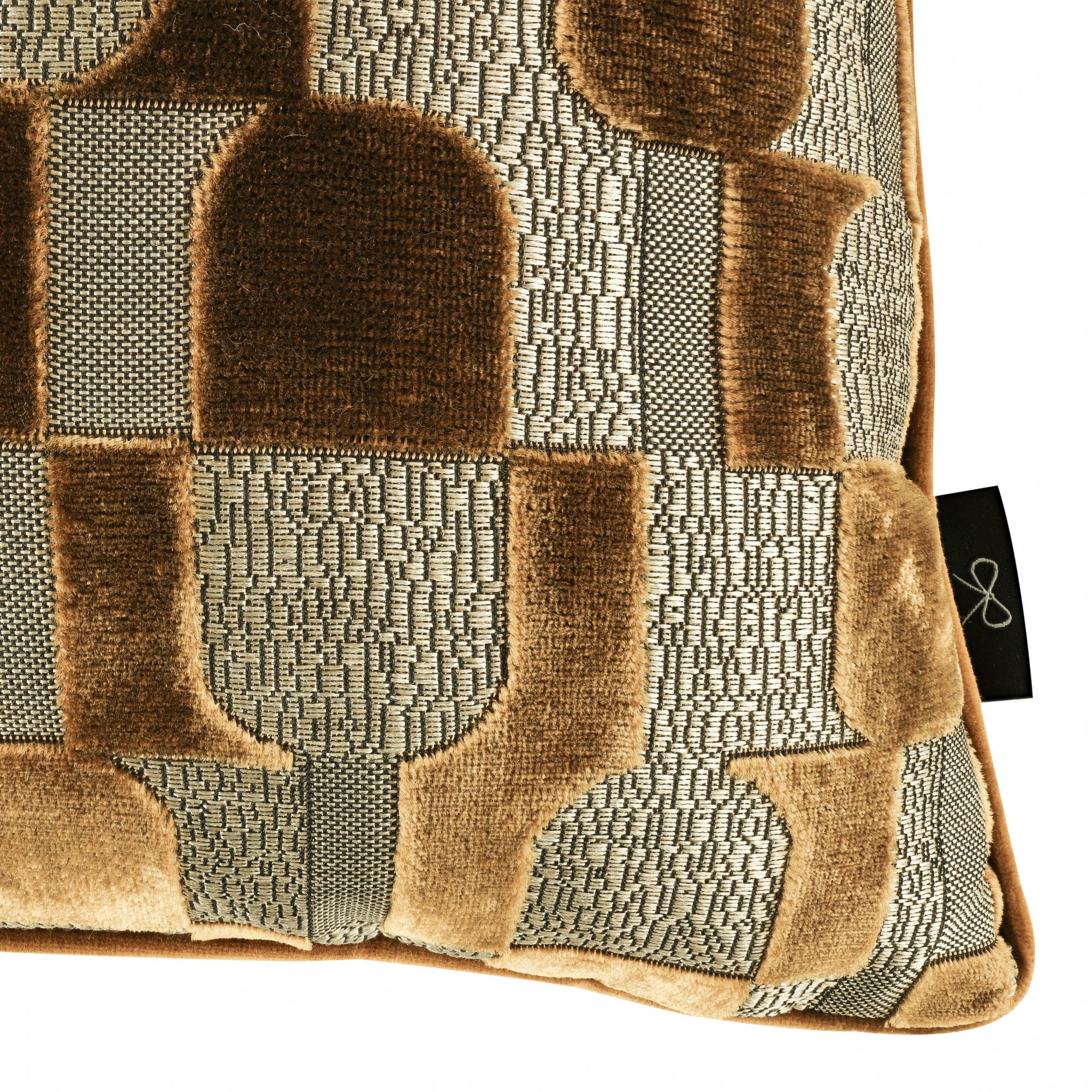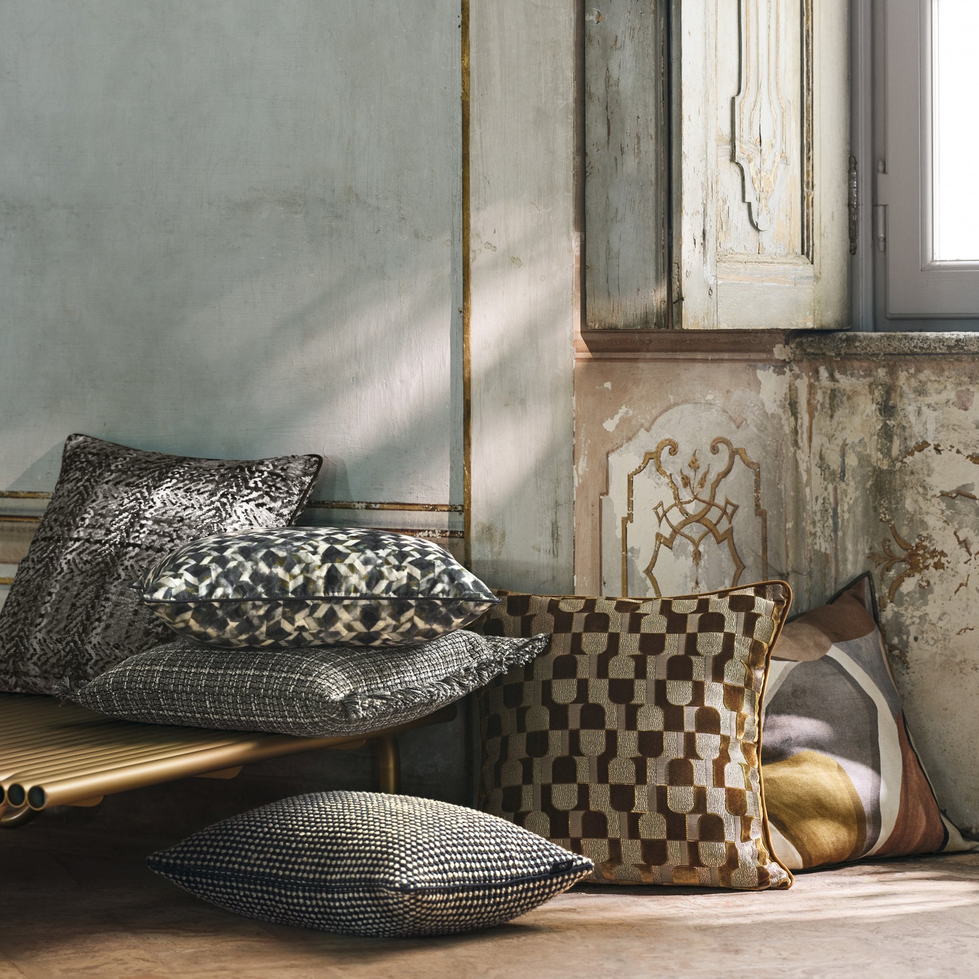 Radiating luxury, the Arkose cushion features a graphic geometric design that depicts structured arches against a backdrop of metallic threads with changing weave effects.