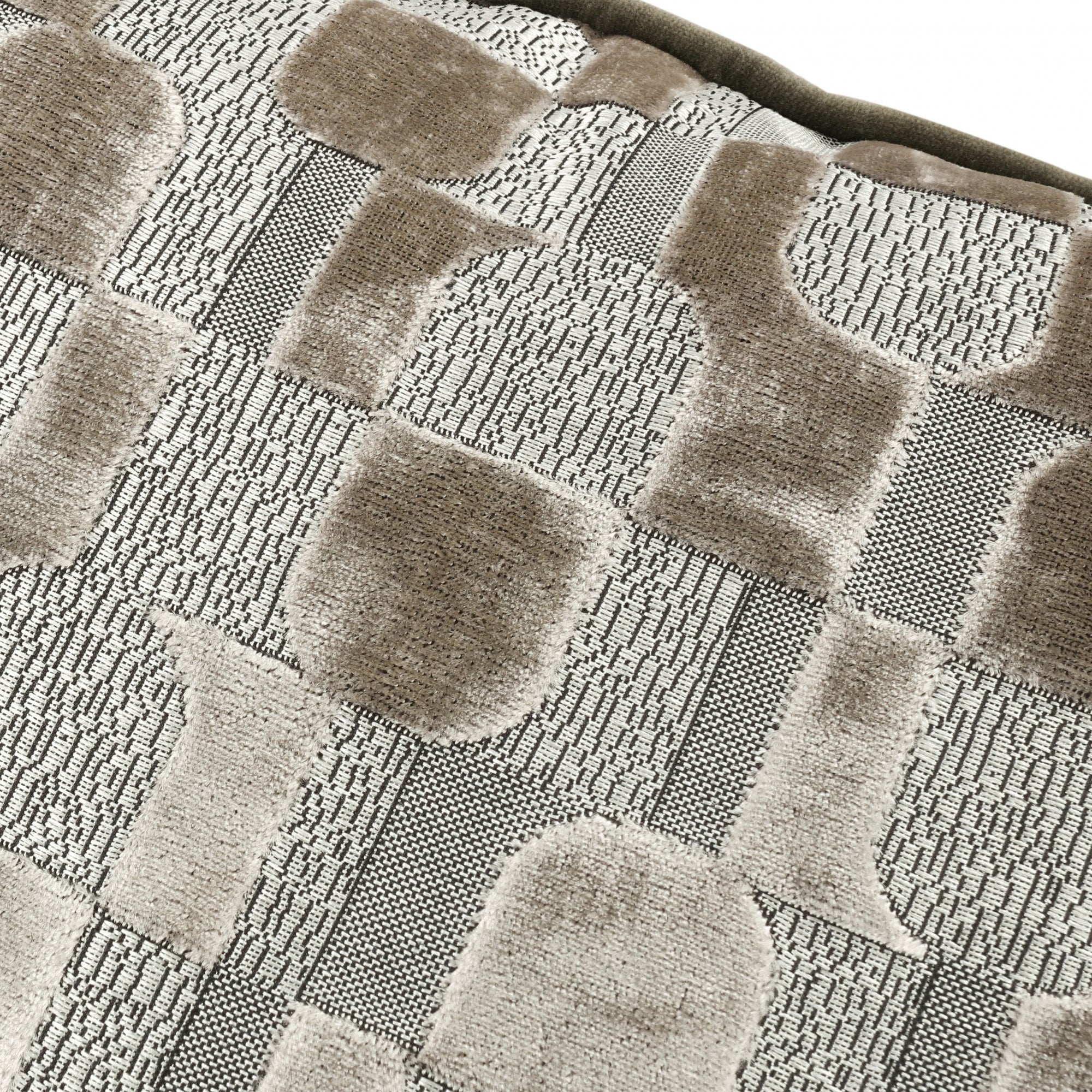 Radiating luxury, the Arkose cushion features a graphic geometric design that depicts structured arches against a backdrop of metallic threads with changing weave effects.