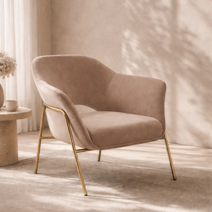 The Arteta Accent Chair is the epitome of modern luxury, combining comfort and elegance in perfect harmony. Its plush soft velvet seat invites you to unwind in style, while the gold-finished frame exudes opulence and sophistication. The chair's curved design, with the added touch of armrests, ensures optimal relaxation and support. The use of complimentary fabric adds a tasteful contrast, elevating the chair's chic and stylish appearance. Whether as an accent piece in a living room or a cozy addition to a bedroom, the Arteta Accent Chair effortlessly complements various interior styles, making a bold statement and becoming a focal point that exudes both class and comfort.