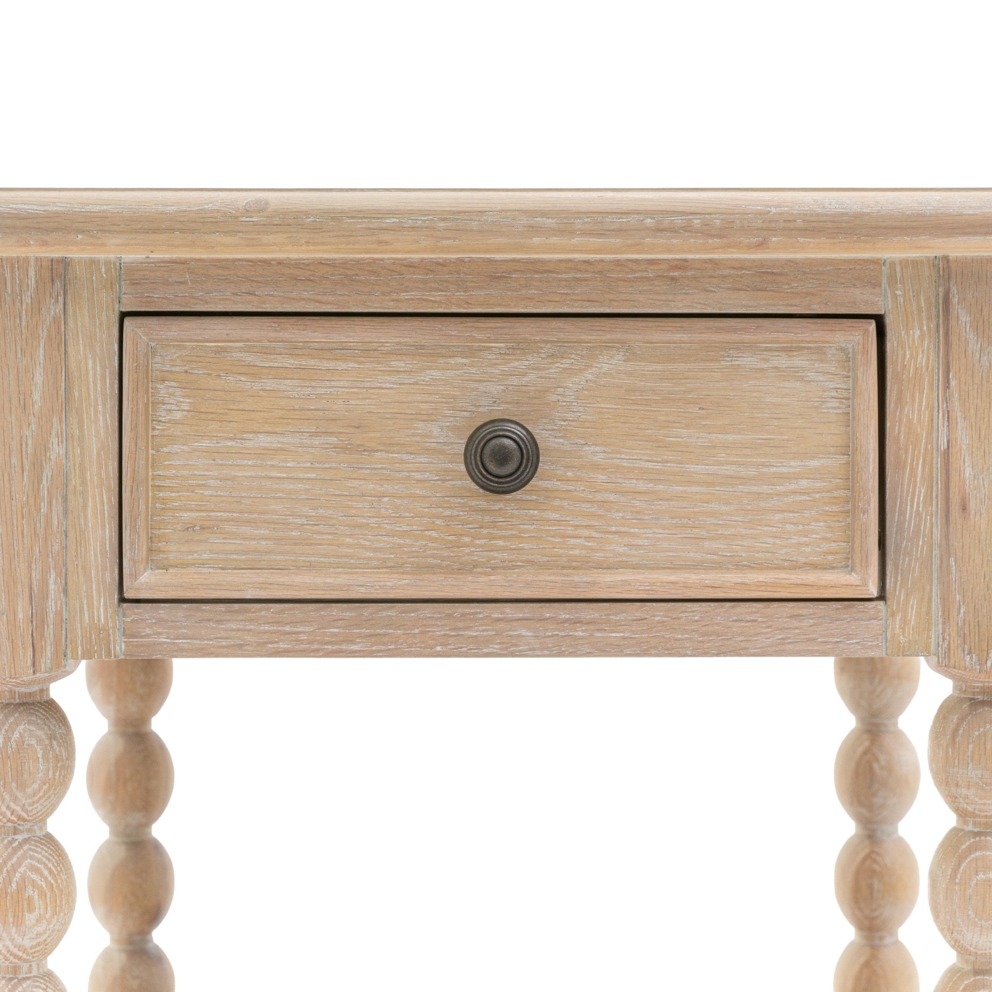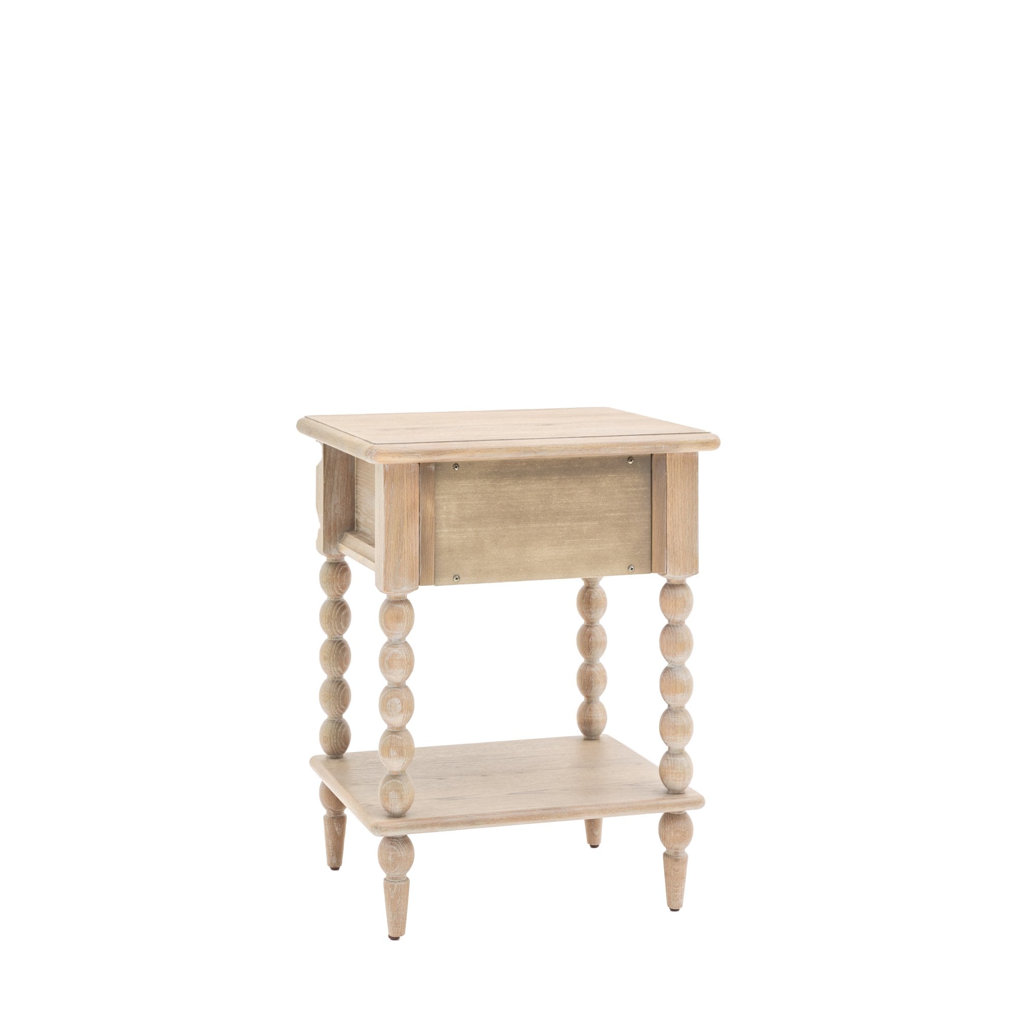 This 1 drawer bedside combines craftsmanship and functionality in a compact design. Featuring intricate hand-turned bobbin detailing, it is made from solid oak with a subtle lime-wash finish for a soft and natural look. This bedside table includes a practical drawer, making it an elegant and versatile addition to any bedroom.