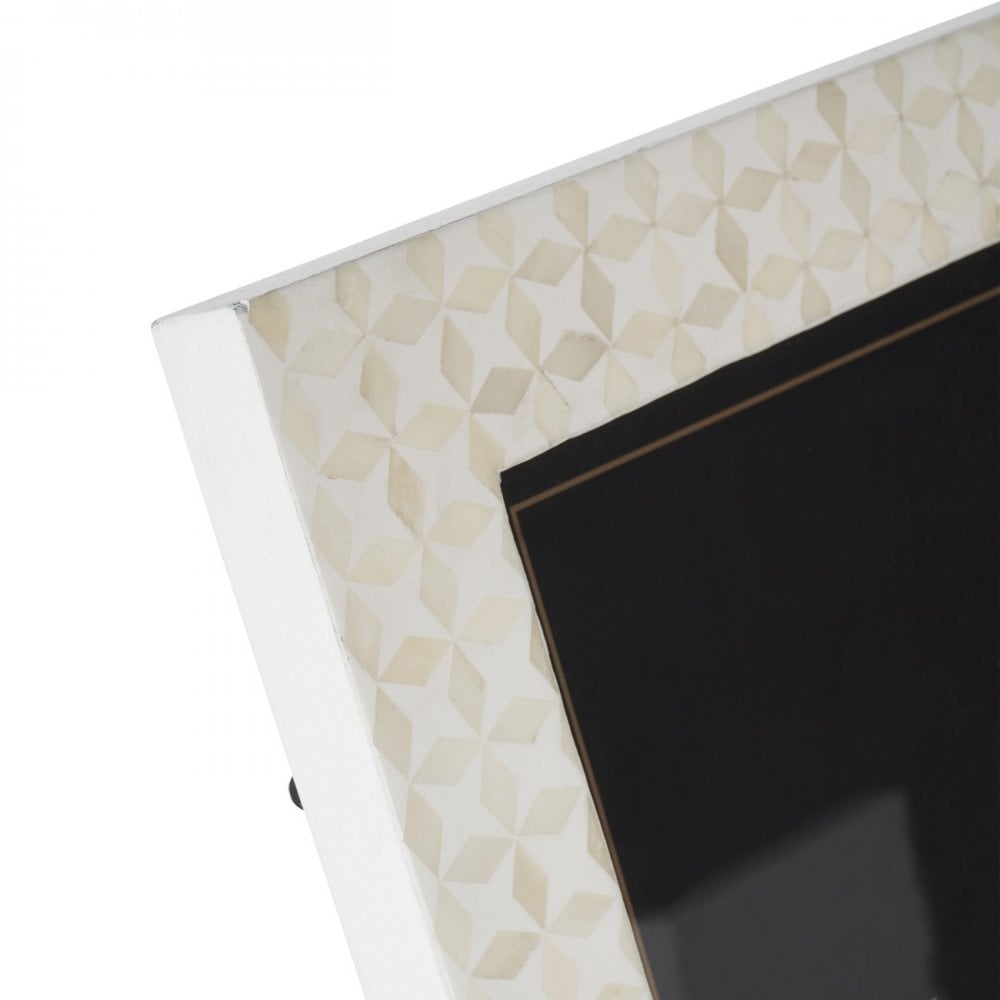 The Aspen Bone Inlay Photo Frame is beautifully adorned with an intricate bone inlay pattern, offering a timeless and elegant aesthetic. Its sleek, clean lines and refined details make it a perfect addition to any space, showcasing cherished memories in a striking yet understated way. This frame complements the Aspen collection, making it an exquisite accent for any home or office. The large size will fit a photo measuring 28cm x 35cm, while the small size is a standard 12.5cm x 17.5cm. This large frame has a stand and hooks for wall mounting.