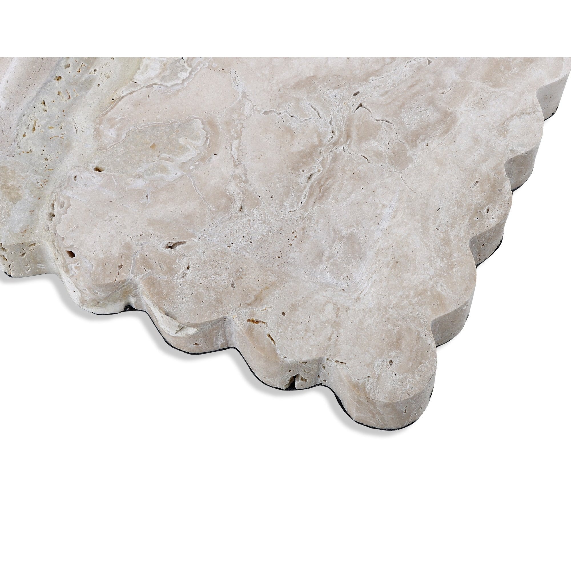 Elevate your decor with the Aurelia Tray, crafted from travertine marble with neutral hues and scalloped edges. Perfect for jewellery, trinkets, or keys, its minimalist design complements any space. Each tray is uniquely crafted, with natural variations in texture.