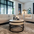 Avalon Bronze & Travertine Set of 2 Round Coffee Tables