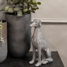 Baxter Large Sitting Dog Sculpture—This sculpture portrays a large dog sitting gracefully, its form radiating strength and poise. With its head looking forward and nose directed ahead, the dog has an air of attention and purpose. The intricate detailing captures its muscular structure and elegant features. Cast in high-quality resin and hand finished with a rich antique bronze, grey hue, this striking sculpture celebrates the majesty and serenity of man’s best friend.