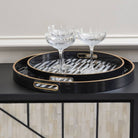 Black And Antique Gold Geometric Pattern Set of 2 Trays
