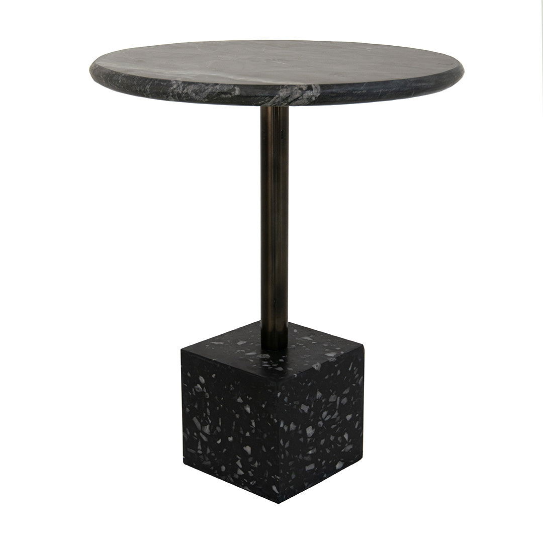 The Ivo Table is an elegant piece that combines modern aesthetics with classic materials. This table features a striking black marble square base, providing a solid and sophisticated foundation. The tabletop is a smooth circle of matching black marble, offering a sleek and seamless look. Connecting the base and the top is an antique nickel pole, adding a touch of vintage charm and contrasting beautifully with the marble's sleekness. The Ivo Table is available in two sizes, catering to different spatial needs and preferences. Whether used as a statement piece in a living room or as a chic accent in a study, the Ivo Table enhances any space with its timeless design and luxurious materials.