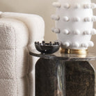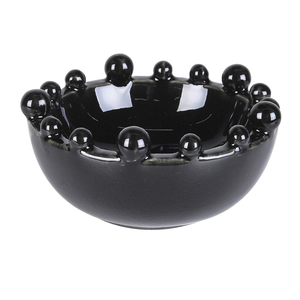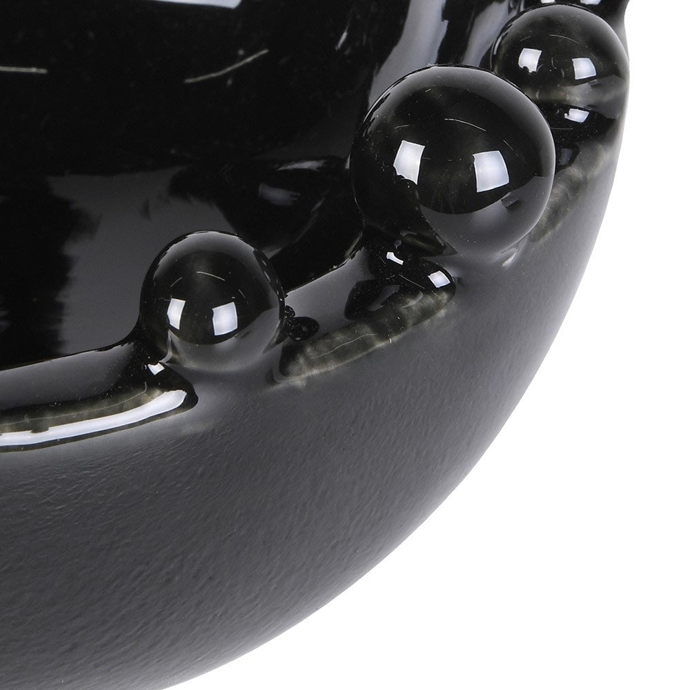 An exquisite ceramic small Black Trinket Bobble Bowl, a work of art in itself. The sleek black surface, adorned with playful bobble edges, creates a perfect balance of modernity and charm. The slightly reflective sheen of the glazed finish adds a refined warm sheen, making it a captivating piece that effortlessly elevates any space. A decorative bowl that turns ordinary into extraordinary.