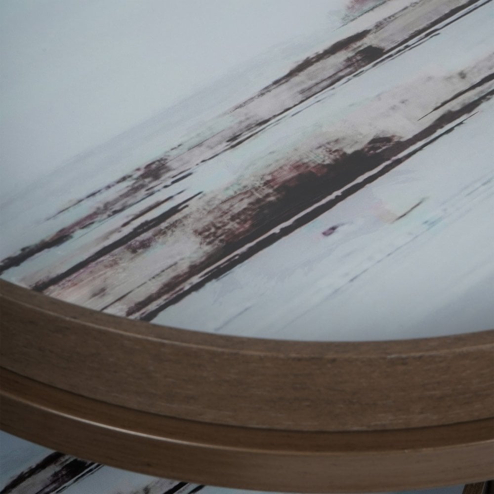Bring artistic flair to your home with our Blurred Seascape Nesting Tray Tables. Featuring our exclusive “Blurred Seascape” artwork on the tray tops, this set of two tables combines stunning design with practicality. Crafted with a sleek metal frame and wood-effect tray edges, these tables are perfect for drinks, decor, or accent pieces. Use them together for a layered look or separately to save space. Their coastal-inspired style suits both modern and classic interiors.