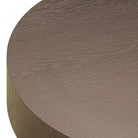 Crafted from plywood and oak veneer with a sleek bronze finish, the larger table features a smooth, organic shape supported by three sturdy column legs. The smaller table offers a more traditional rounded design. These versatile tables can be used together for a layered look or separately to enhance your space’s functionality.
