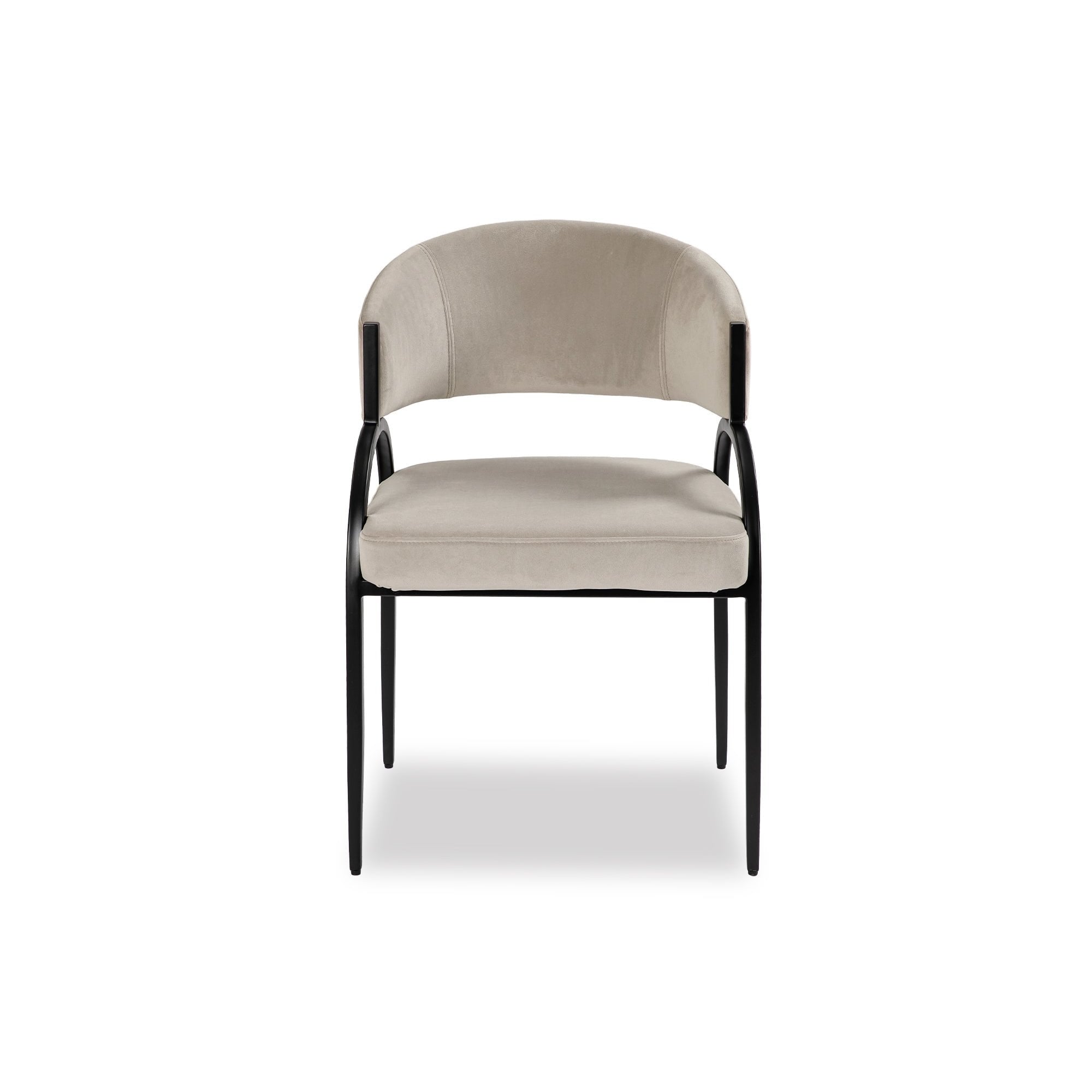 Transform your dining area with the Kaster Dining Chair, featuring a sophisticated light grey upholstery and sleek matte black metal legs. Crafted for comfort, its generously rounded seat and elegantly curved backrest invite relaxation and enhance your dining experience. Perfectly combining style and functionality, this chair is an essential addition to any modern space.