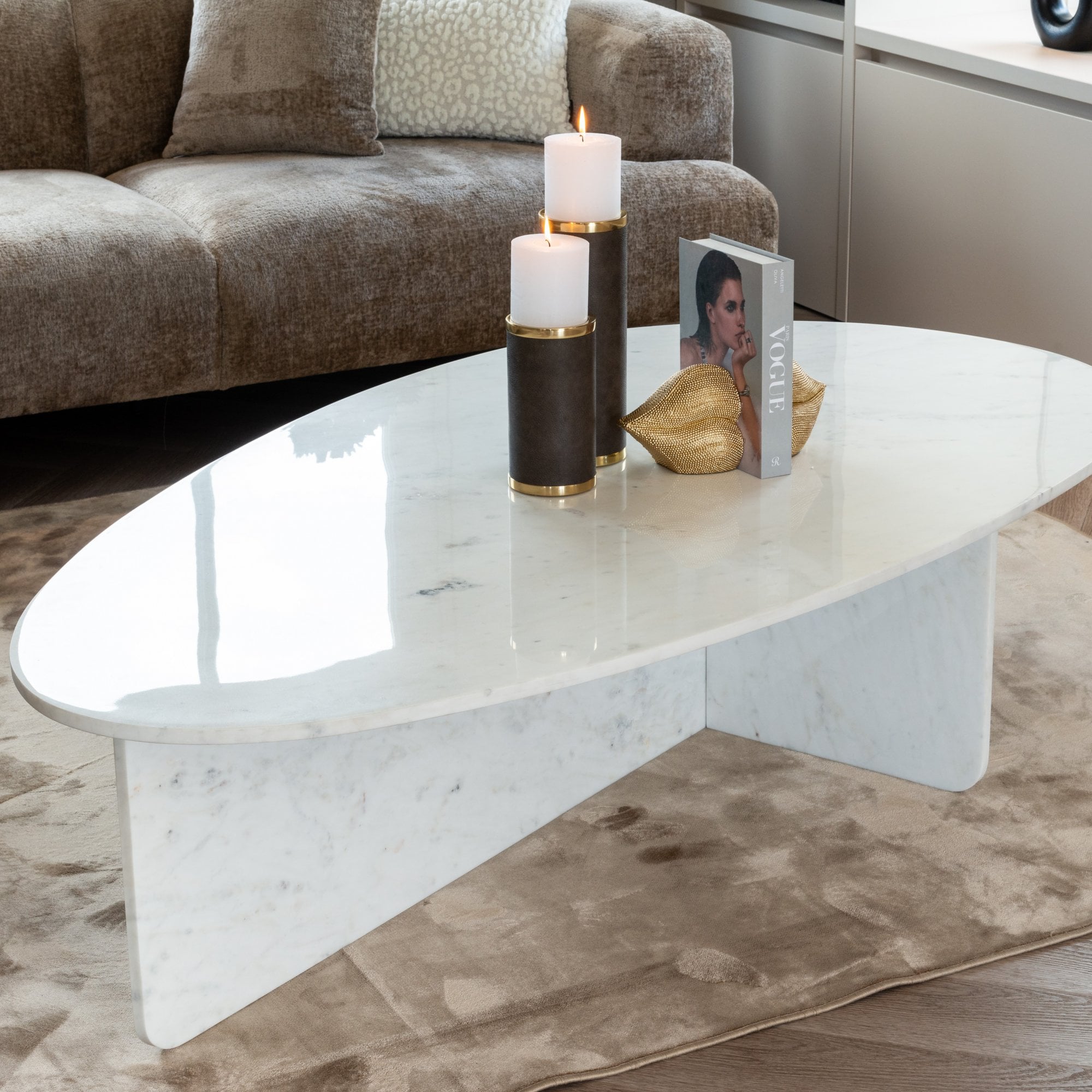 Elevate your living space with the timeless elegance of the Brandon White Marble Curved Coffee Table. Expertly crafted from solid white marble, this statement piece features a smooth, curved silhouette that blends sophistication with modern design.