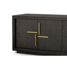 Finished in a richly textured dark brown oak veneer, the surface highlights the natural grain and depth of the wood, bringing warmth and character to contemporary interiors. The sleek gold handles provide a sophisticated contrast, adding a subtle touch of luxury that elevates the overall design.