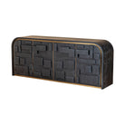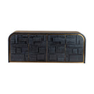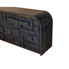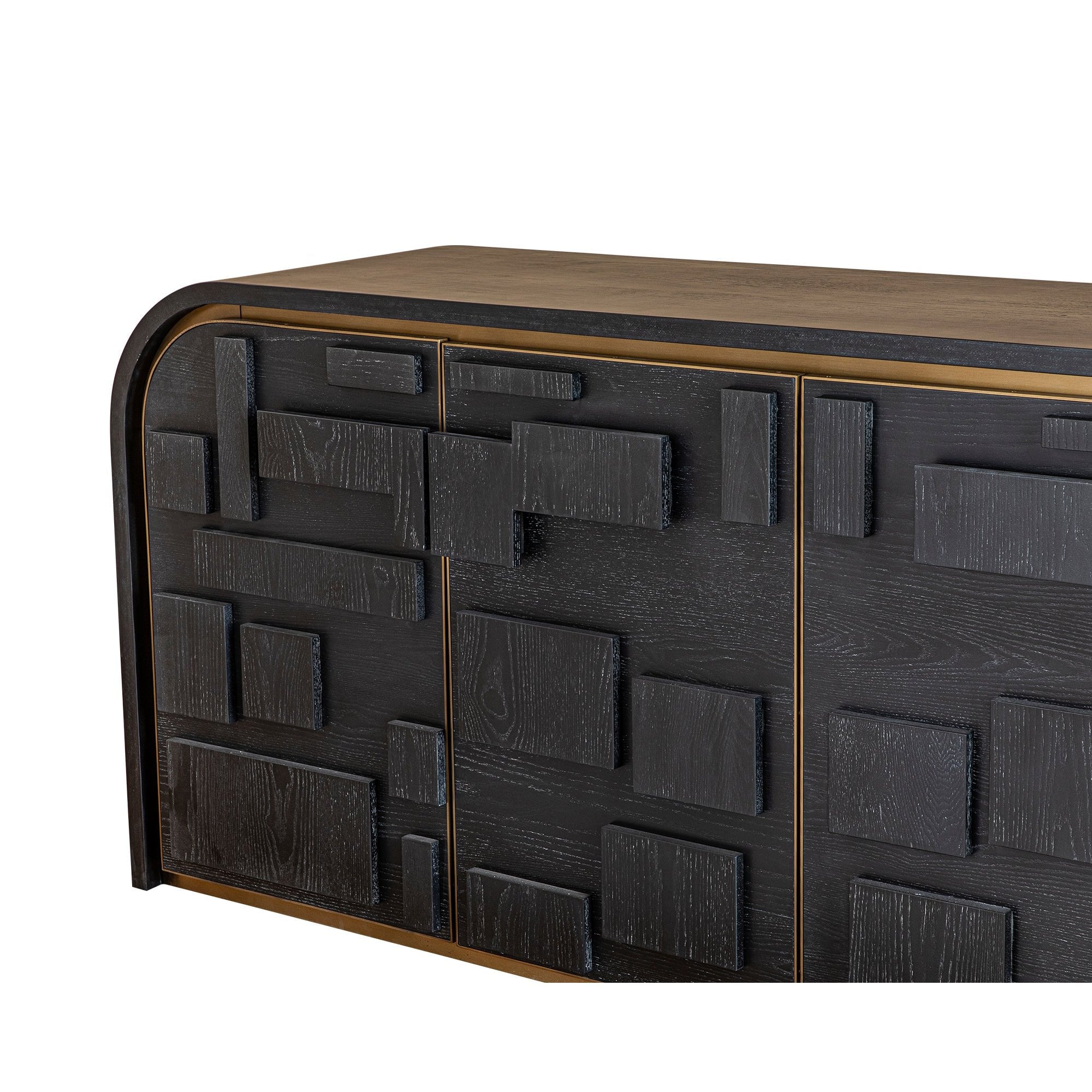 Experience the understated elegance of the Brutalist Four Door Sideboard, blending chic sophistication with mid-century modern appeal. Crafted from ebony cerused ash, it features striking brushed brass decorative trim that enhances its art deco design. The cabinet’s unique 3D effect and geometric elements create a perfect balance between informal charm and refined style.