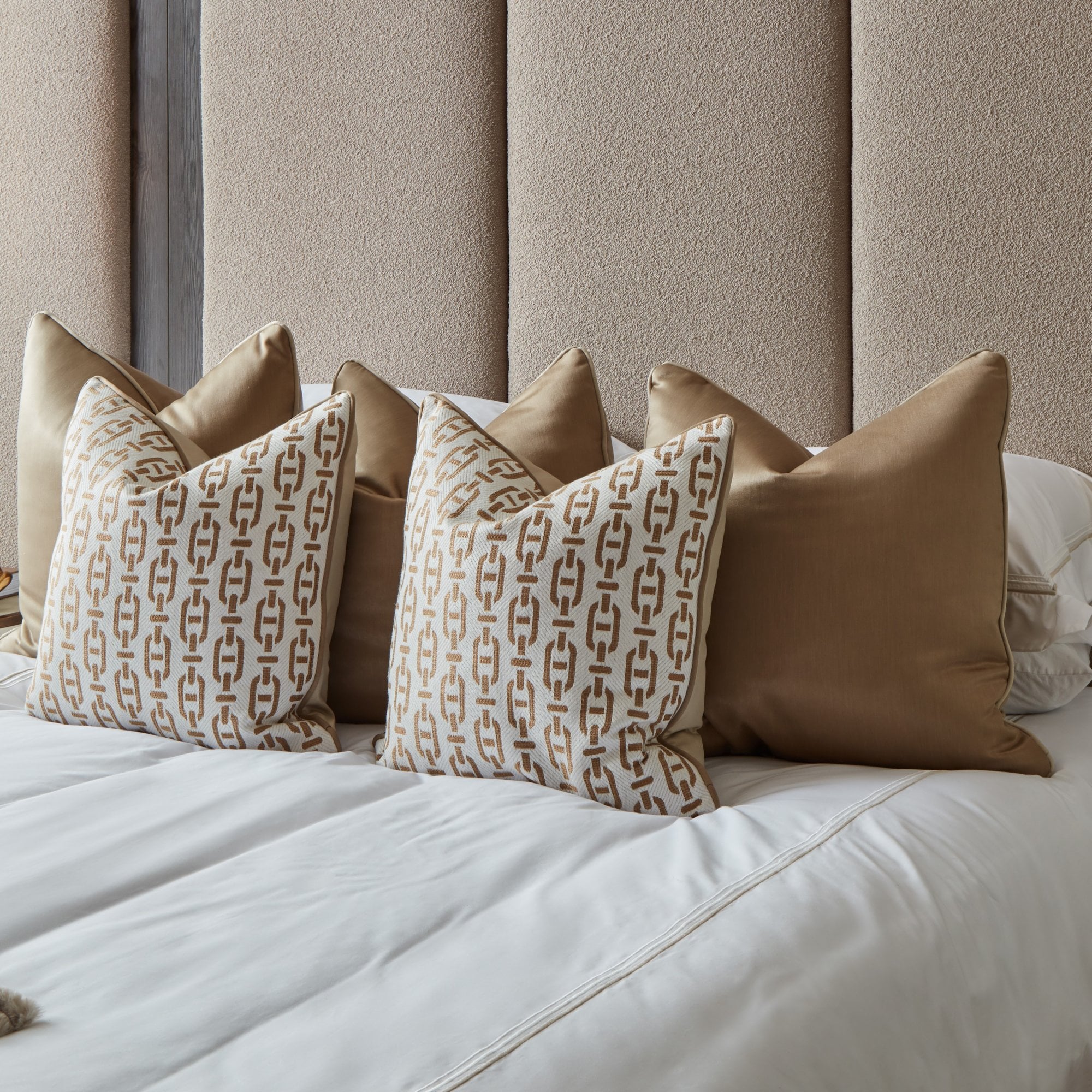 These sets come complete with luxury duck feather inserts. Cushion Set in Burlington Tan Fabric. The Decorum collection of cushions is an elegant and sophisticated palette that is perfect for layering with the other prints from our collection, or simply adding subtle patterns to a neutral scheme.