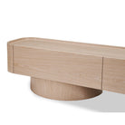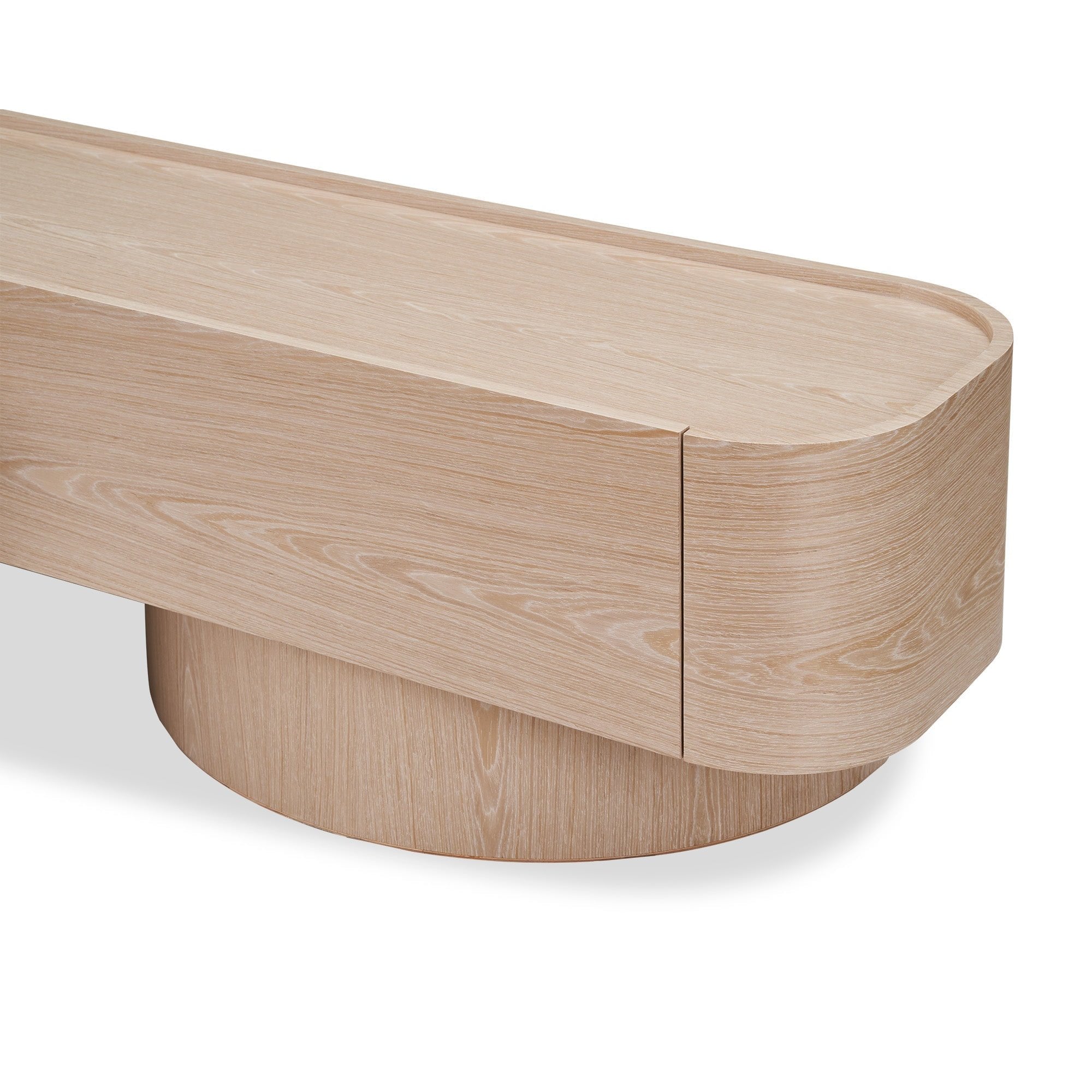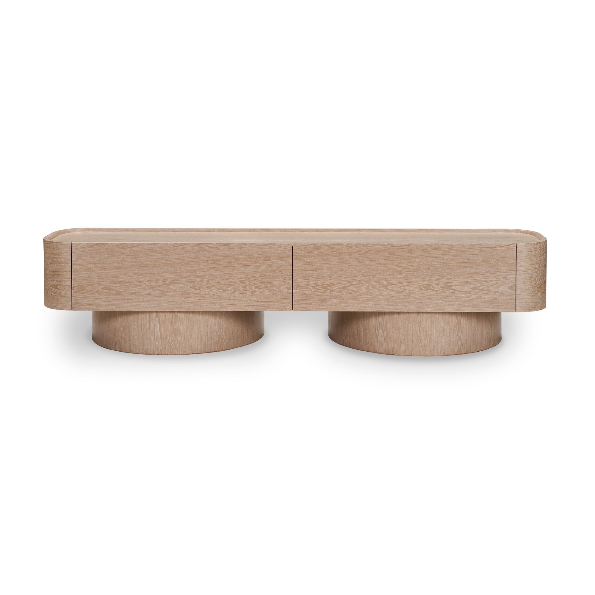 Introducing the Butka Media Sideboard in Pale Oak, a stylish and versatile addition to your home or office. This piece harmoniously fuses the inviting warmth of light brown oak with a sleek, minimalist design. Enhanced by two spacious drawers, it offers ample storage while exuding timeless elegance, making it ideal for any living room, bedroom, or study.