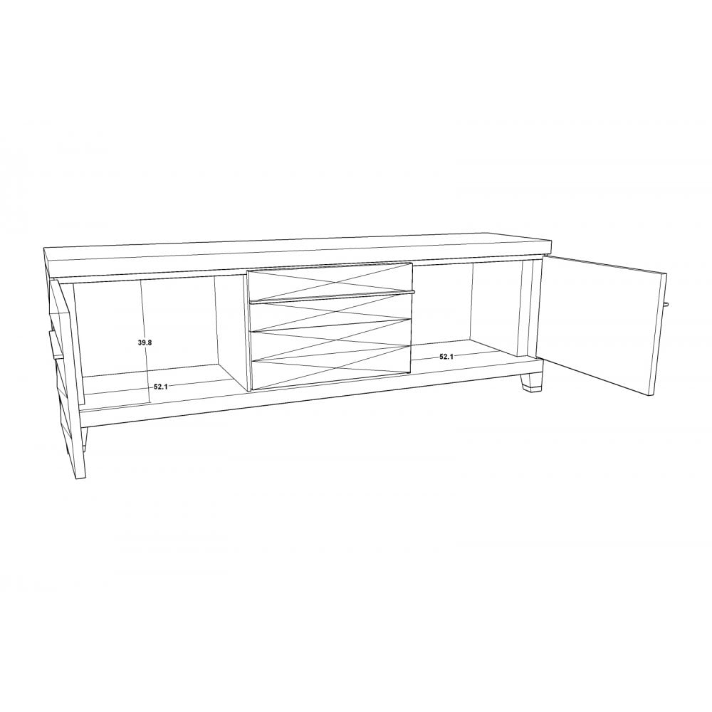 Cassis Media Unit Grey Oak Wood with Gold Handles 2-Doors & 2-Drawers