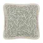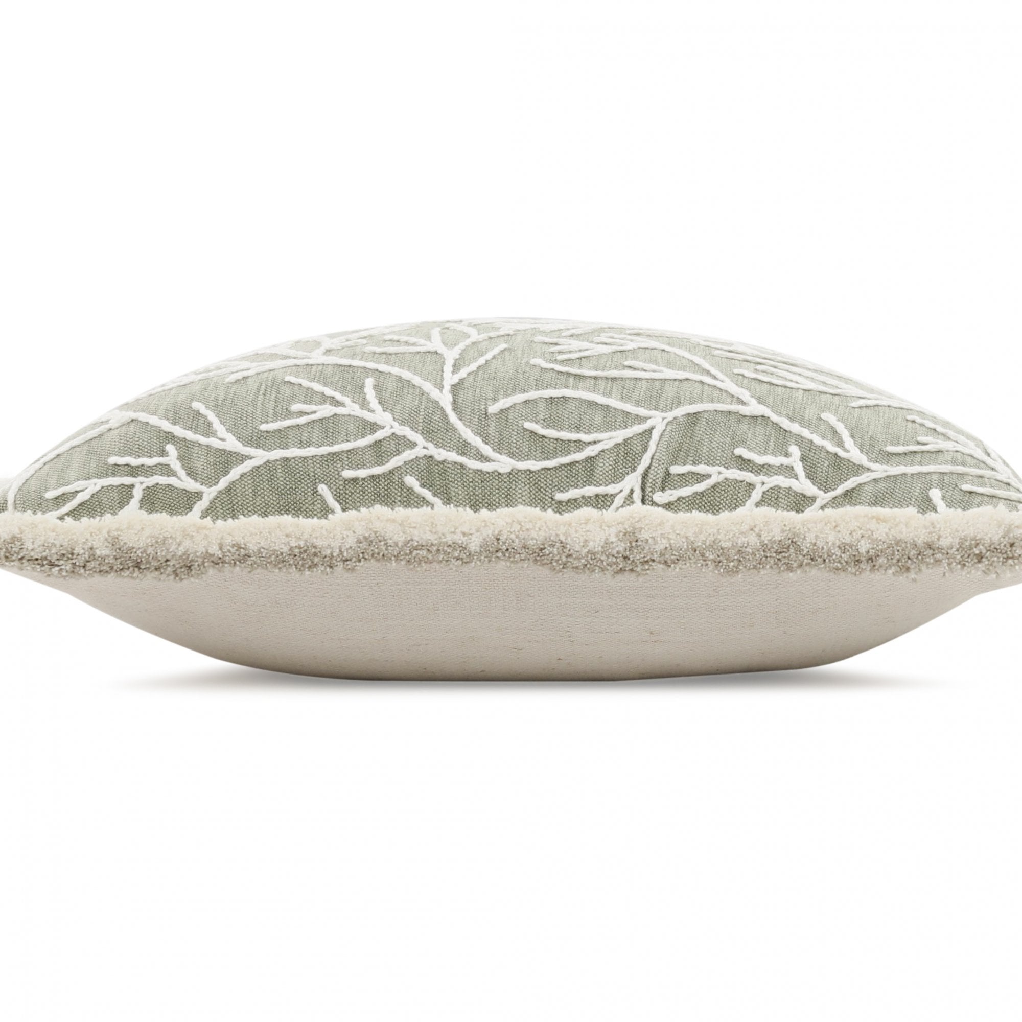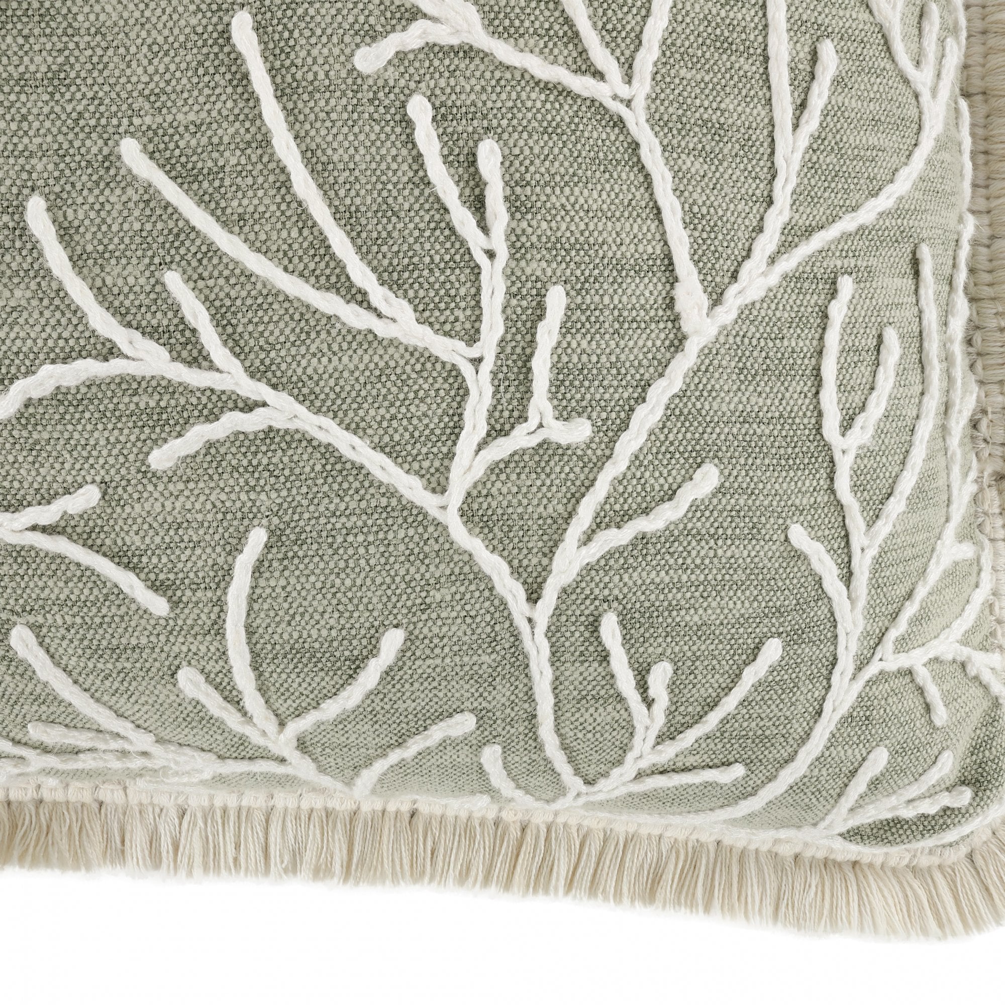 A creative cushion; corded embroidery outlines sprawling fronds on top of a softly textured cloth. An added textual detail, a stunning two-tone ruche borders this eye-catching readymade cushion.