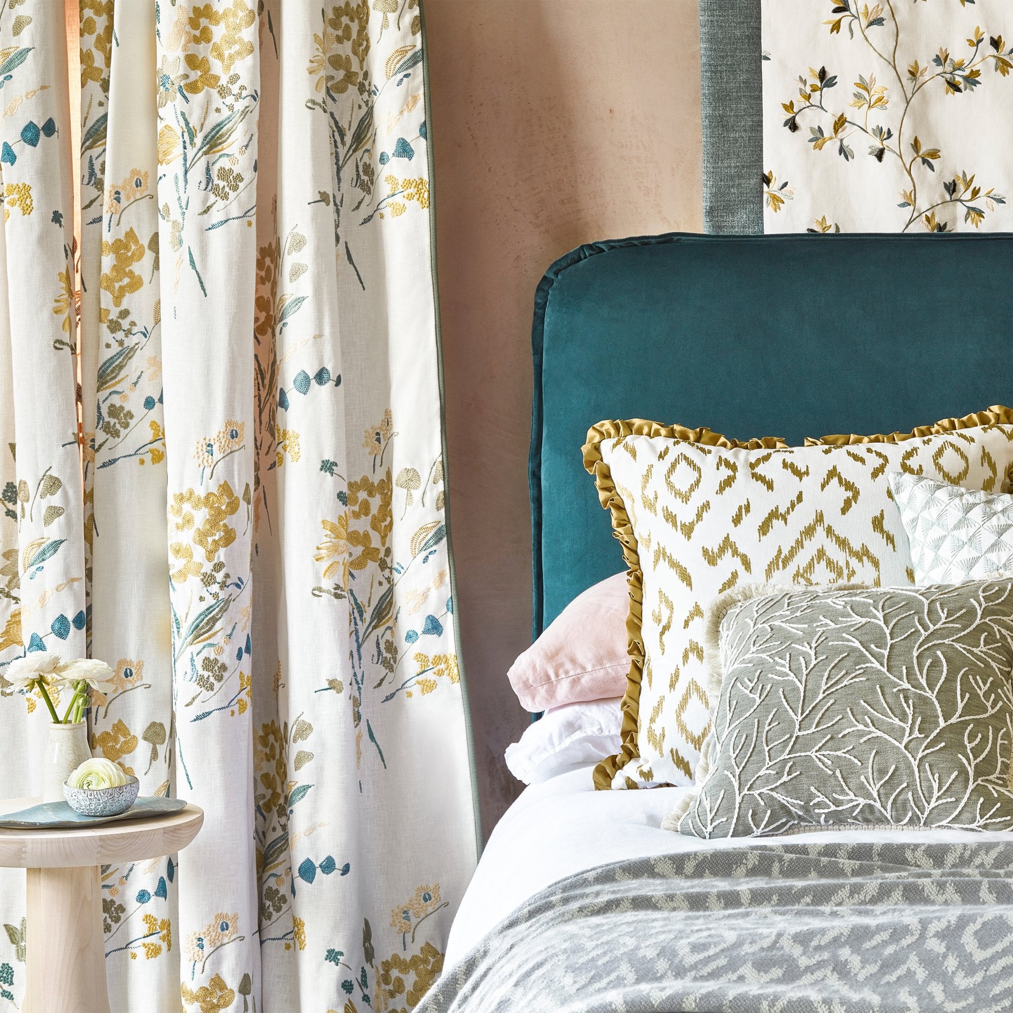Abloom Cushions feature elegant embroidered florals and modern patterns, with the exciting addition of ruffles and trimmings.
