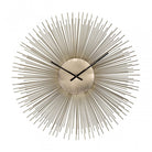 Radiating from a central rounded clockface, the Chasin Clock features a stunning array of golden iron rods that create a dramatic sunburst effect. Its sleek black hands and absence of numerals lend a refined, minimalist edge - perfectly balancing the intricate design and opulent finish. Whether positioned above a mantel, styled on a sideboard, or mounted on a feature wall, the Chasin Clock is designed to stand out and elevate the elegance of any interior.