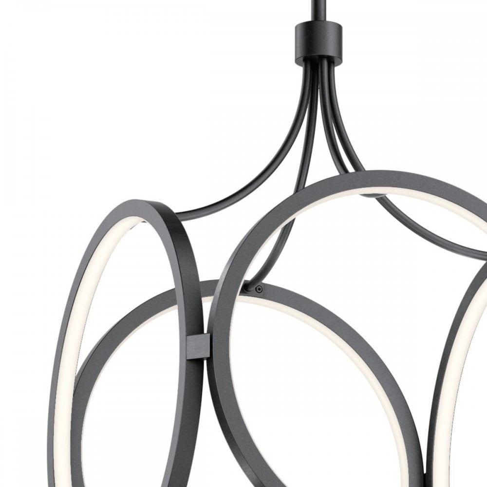 The Ciri LED pendant offers a soft-modern take on a classic cage-pendant. Delicate circles of dimmable LED lights are hidden within the fixture, creating an invisible light source that fills the circles with light for an airy feel. This beautiful pendant pairs well with mid-century, urban, retro, and modern styles. Available in Matte Black.