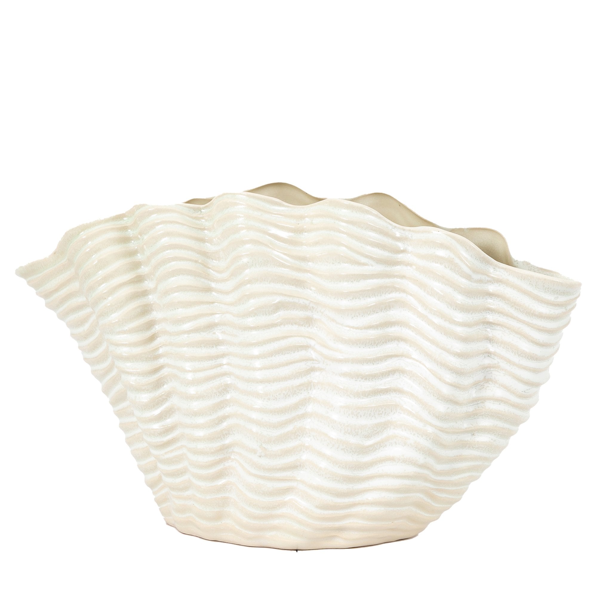 Bring the seaside to your room with this beautiful shell shaped vase. In a white reactive glaze and fluted seashell details, this is the perfect way to display your flowers. Smaller version also available.