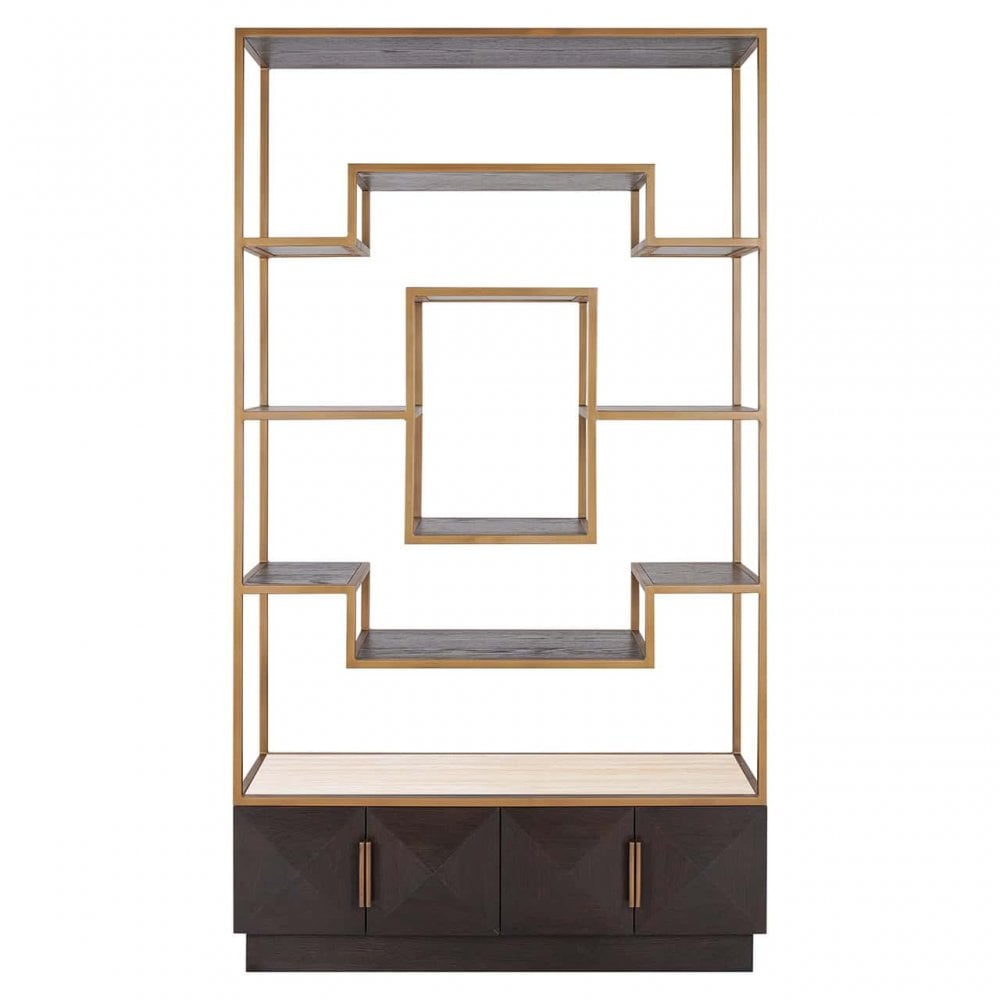 - Materials: Oak, Oak Veneer, Iron, Wood, Travertine