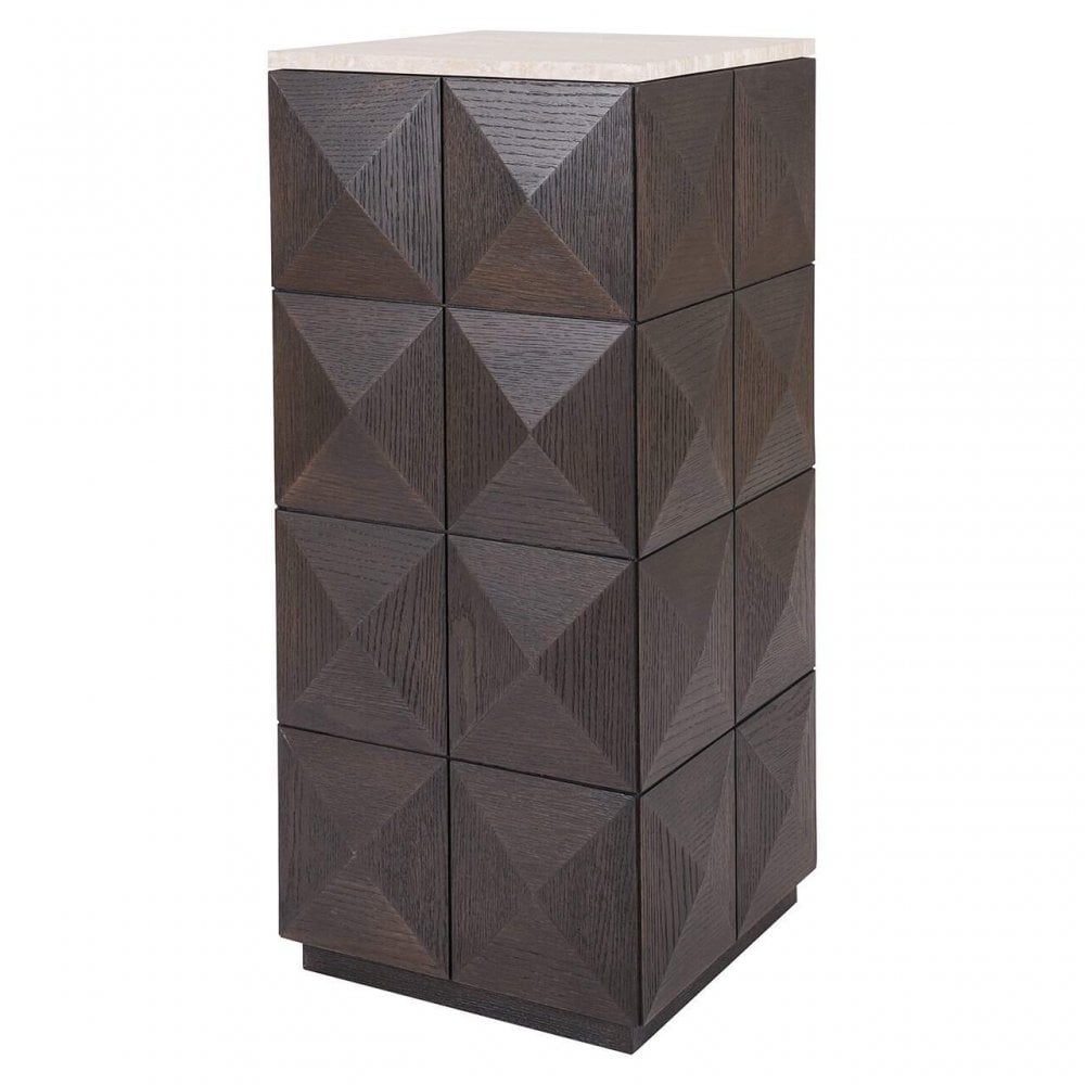 Add a touch of understated luxury to your home with the Claremont Column in Brown from Decorum Interiors. Crafted from oak, oak veneer, stone, and wood, this distinctive piece blends natural textures with timeless design, making it both stylish and durable.