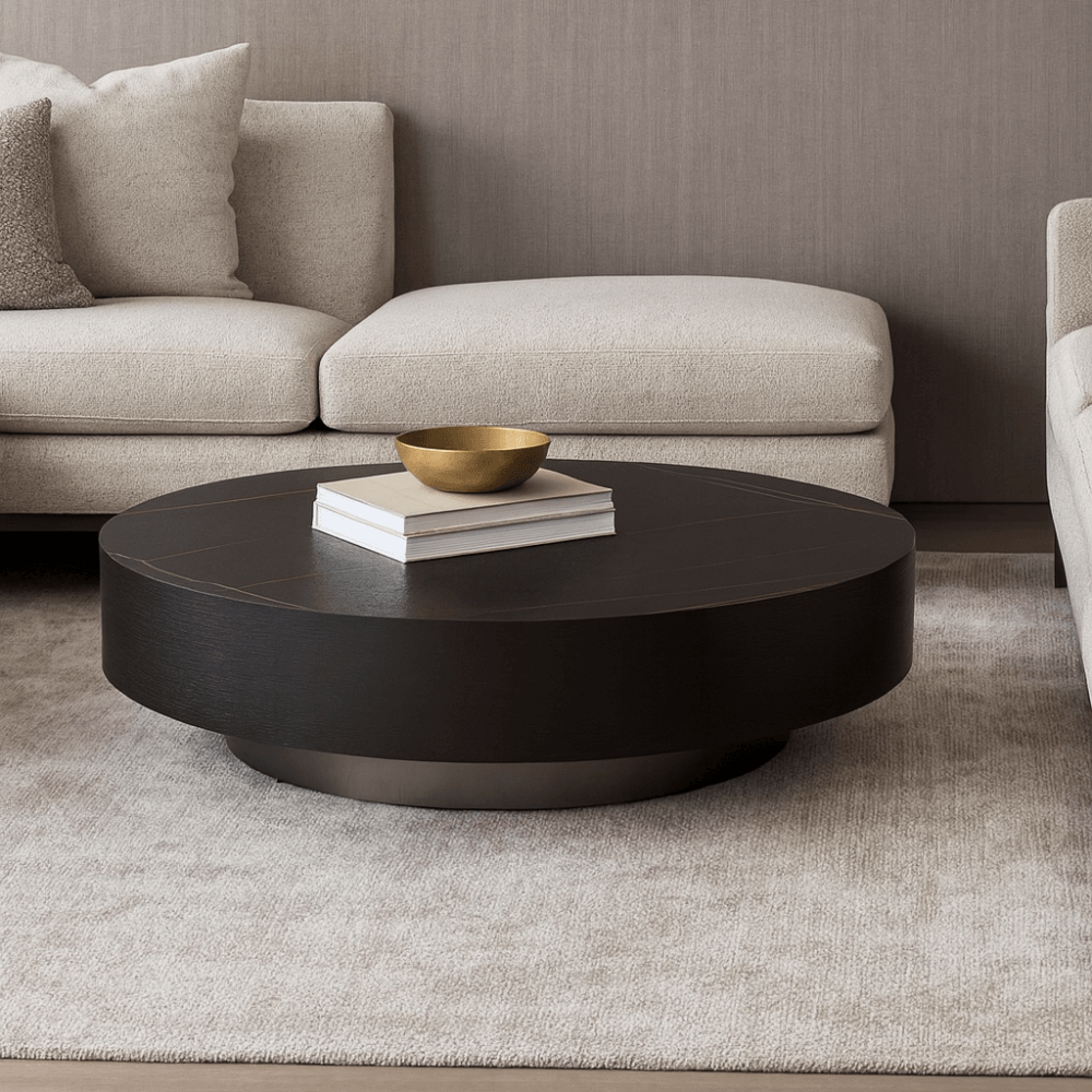 The Coin Coffee Table is the epitome of chic and sophisticated design, making a bold statement in any living space. With its exquisite Black Ceramic top with Marble pattern (lauren black golden ceramic), it not only showcases a luxurious aesthetic but also adds a touch of timeless elegance. The table's low-profile design not only modernizes the room but also allows it to seamlessly blend with various decor styles. Its unique, rounded shape and overall aesthetics make it an instant focal point that elevates the style quotient of any room, creating an exceptional blend of form and function that truly sets the Coin Coffee Table apart.
