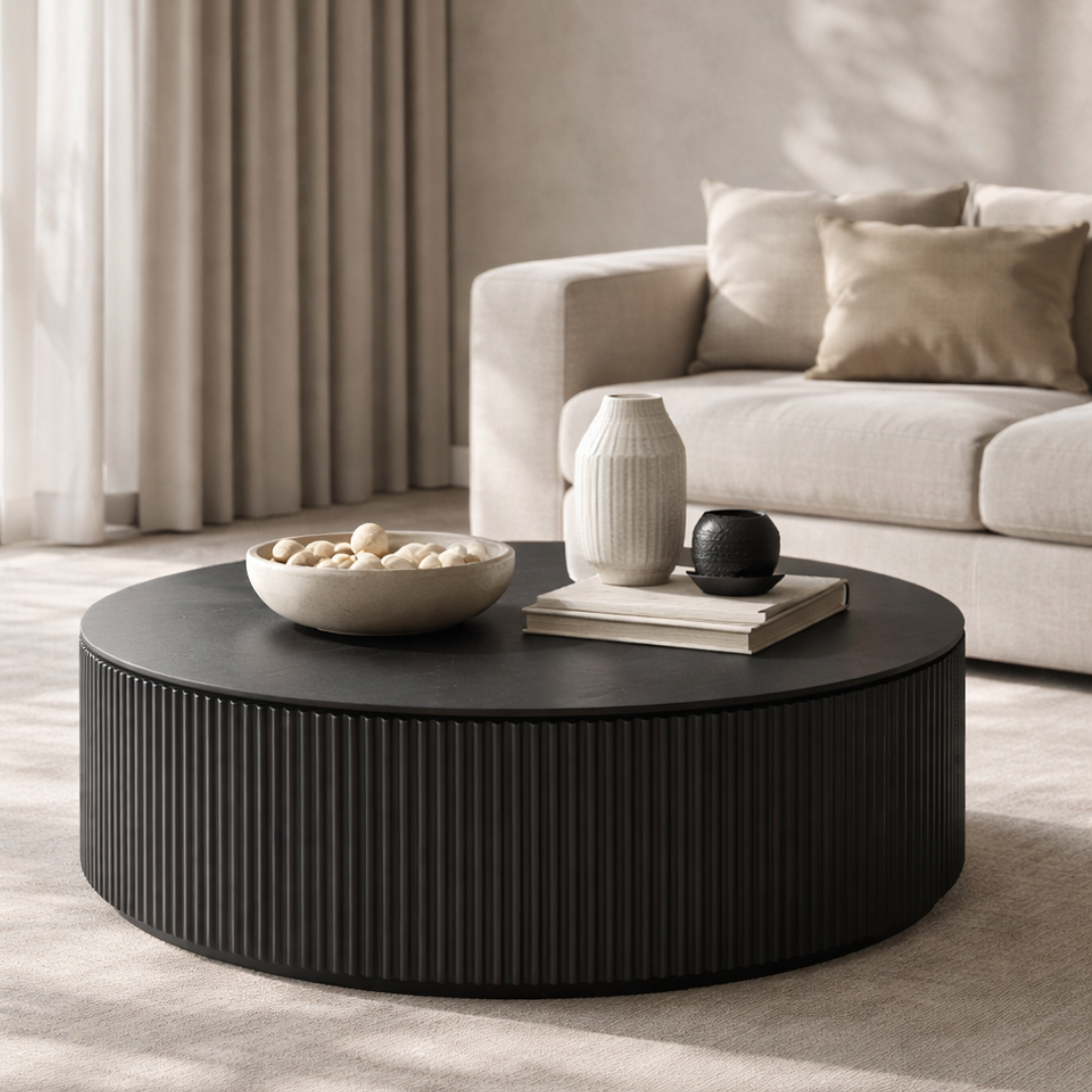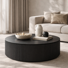 The Costine Coffee Table effortlessly blends chic aesthetics with contemporary design, making it a stylish focal point for any modern living space. Its on-trend appeal is evident in the round top crafted from sleek black oak veneer, adding a touch of sophistication to the overall look. The table's distinctive charm is further enhanced by ribbed panelling on the base, providing texture and visual interest. The black lacquer base not only complements the rich tone of the tabletop but also ensures a durable and polished finish. With its harmonious fusion of form and function, the Costine Coffee Table is a testament to contemporary elegance, making it an ideal choice for those seeking a statement piece that seamlessly integrates into today's interior design trends.