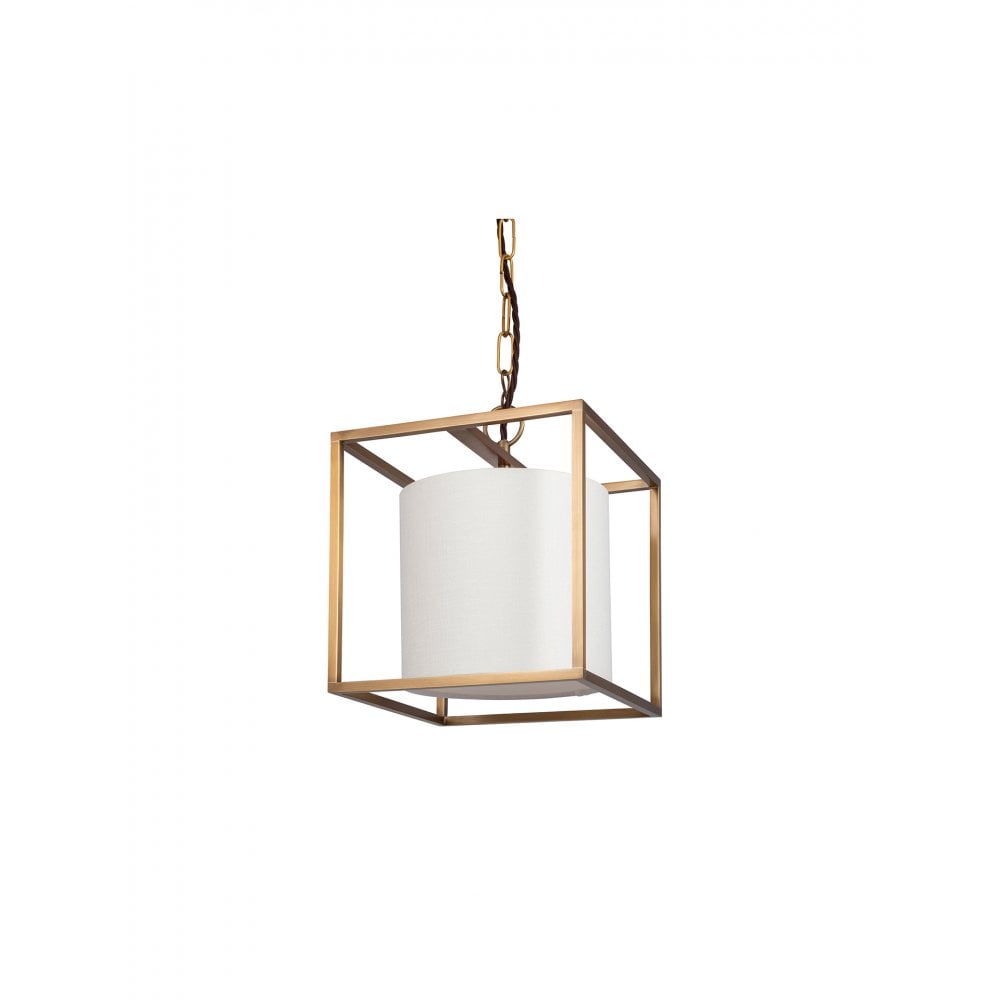 Framing a neutral lampshade, the brass cube structure of our bestselling Derwent pendant creates a distinctive focal point, adding soft textured detail to any interior scheme.
