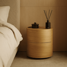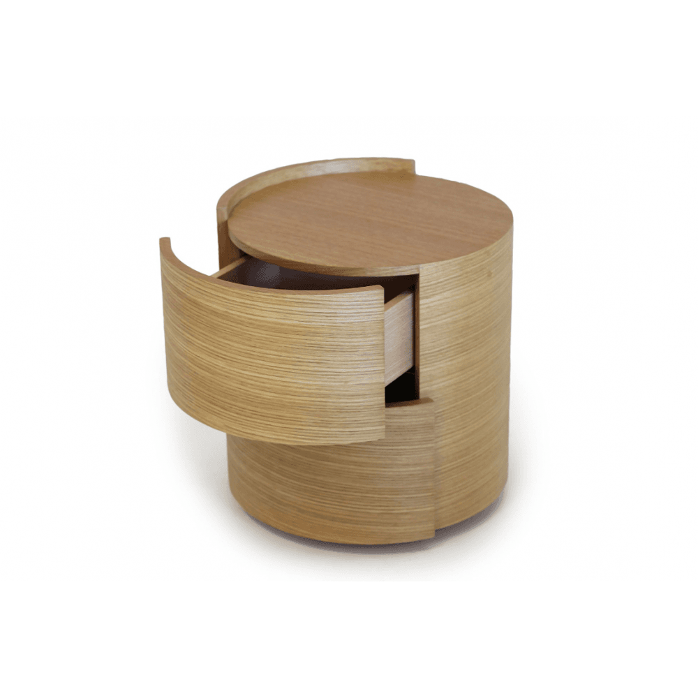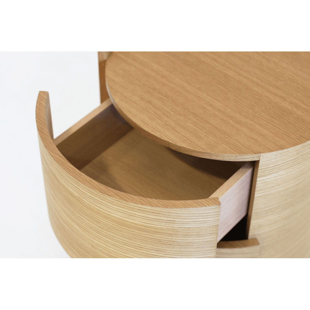 The Dexter Bedside Table is the perfect addition to any bedroom for storage and style. This left hand design features two drawers with a soft closing mechanism and an ash oak veneer in a curved design for a modern look. Perfect for holding lamps and other items, this bedside table offers both practicality and beauty. Its sleek and compact form makes it ideal for smaller spaces, while the quality craftsmanship ensures durability for years to come. With the Dexter Bedside Table, you can effortlessly elevate your bedroom's aesthetics and keep your essentials within arm's reach.
