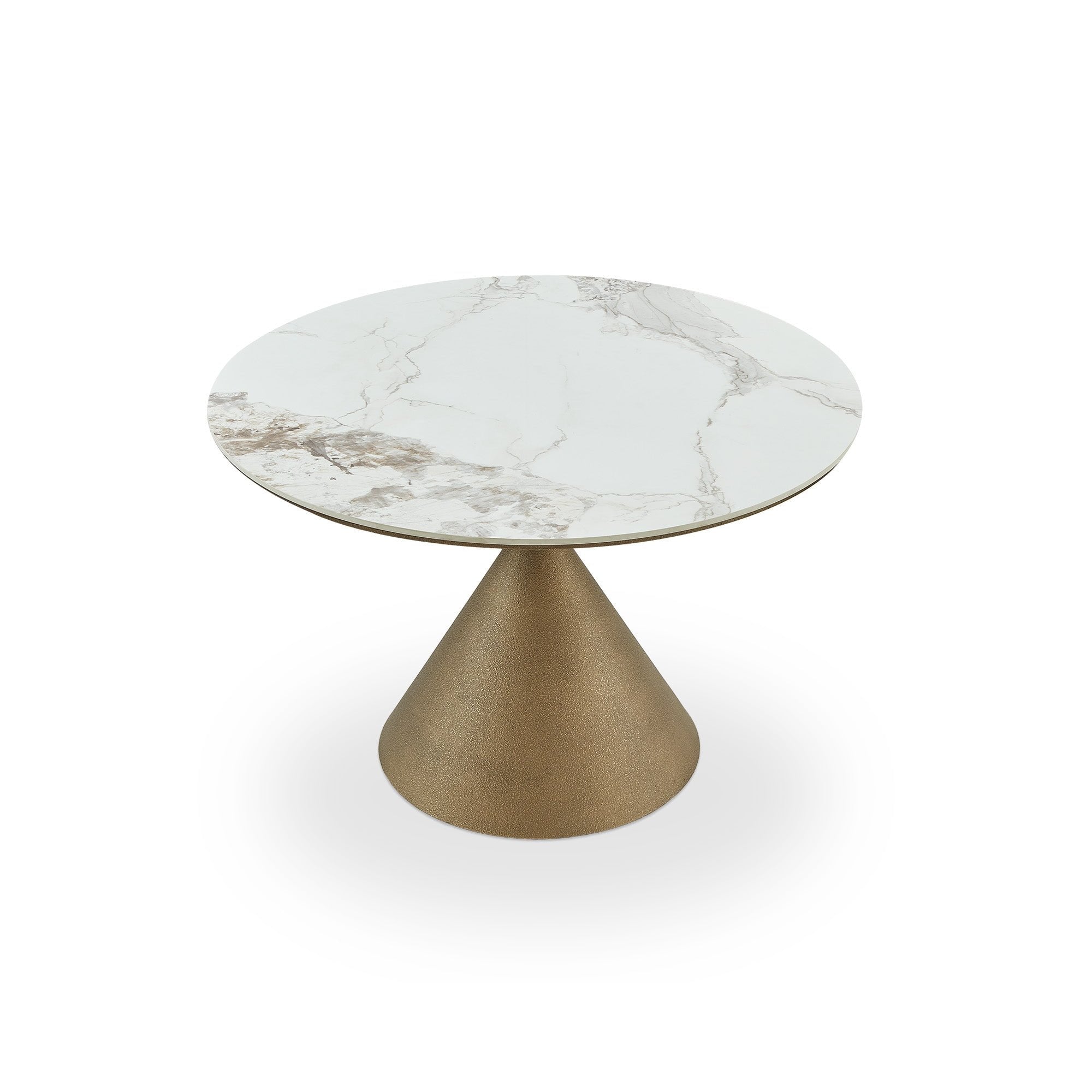 Redefine luxury dining with the Ditta Dining Table, featuring a stunning marble-effect ceramic top on a captivating golden base. Its striking design and tapering silhouette command attention, ideal for both hospitality and residential settings. Perfect for hosting dinner parties or intimate gatherings, this table seamlessly blends with various decor styles, creating a central piece for memorable moments.