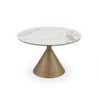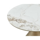 Ditta Dunas White Marble Effect & Patina Antique Gold Dining Table